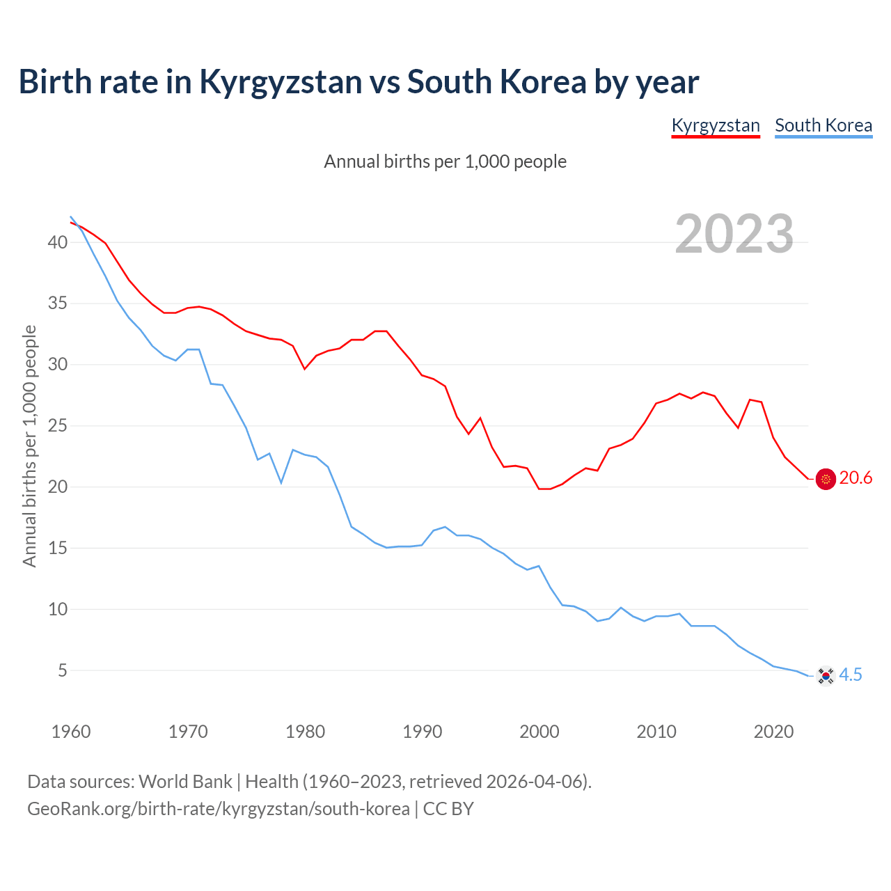 GeoRank.org/birth-rate/kyrgyzstan/south-korea | CC BY