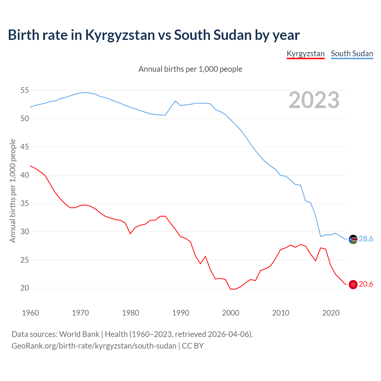 GeoRank.org/birth-rate/kyrgyzstan/south-sudan | CC BY