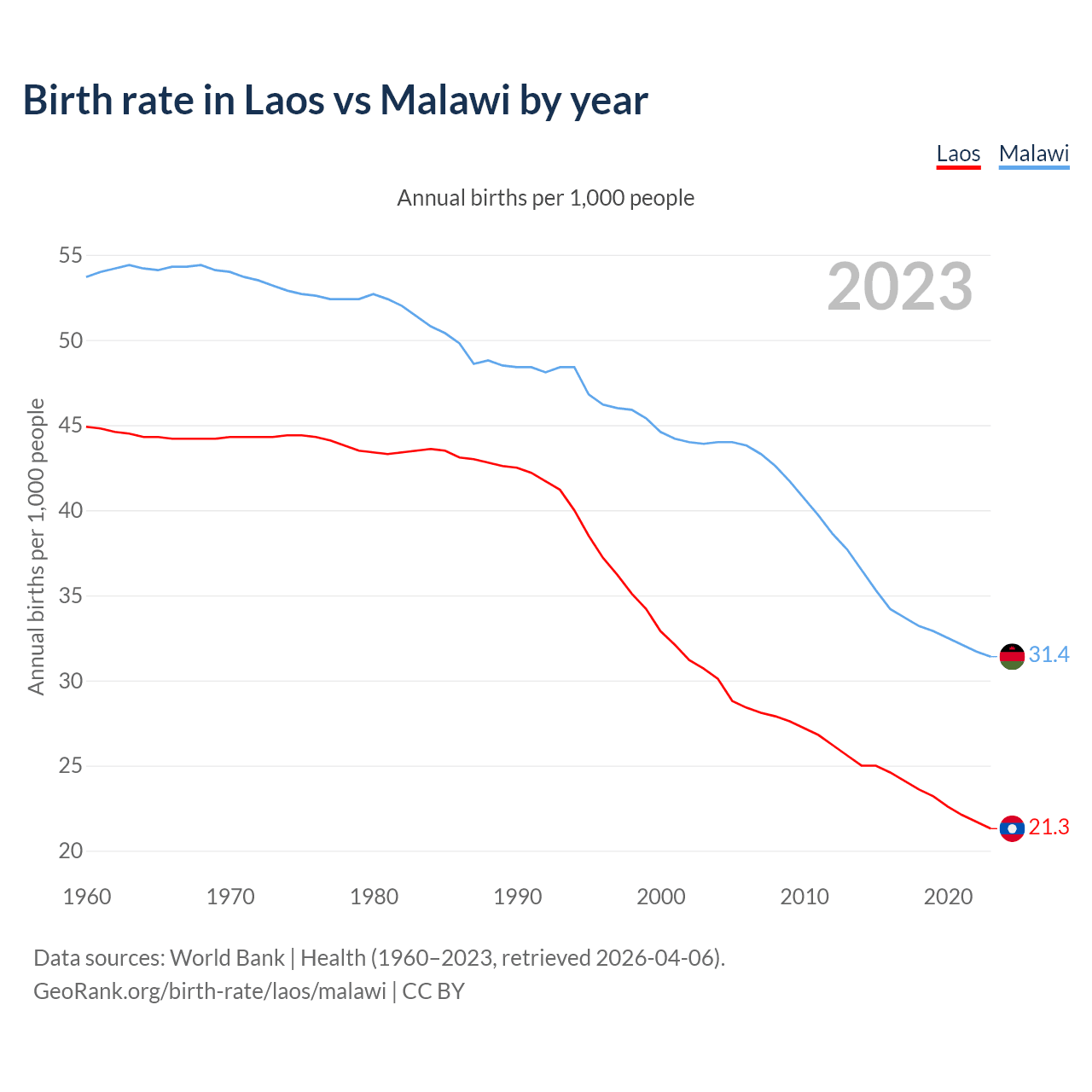 GeoRank.org/birth-rate/laos/malawi | CC BY