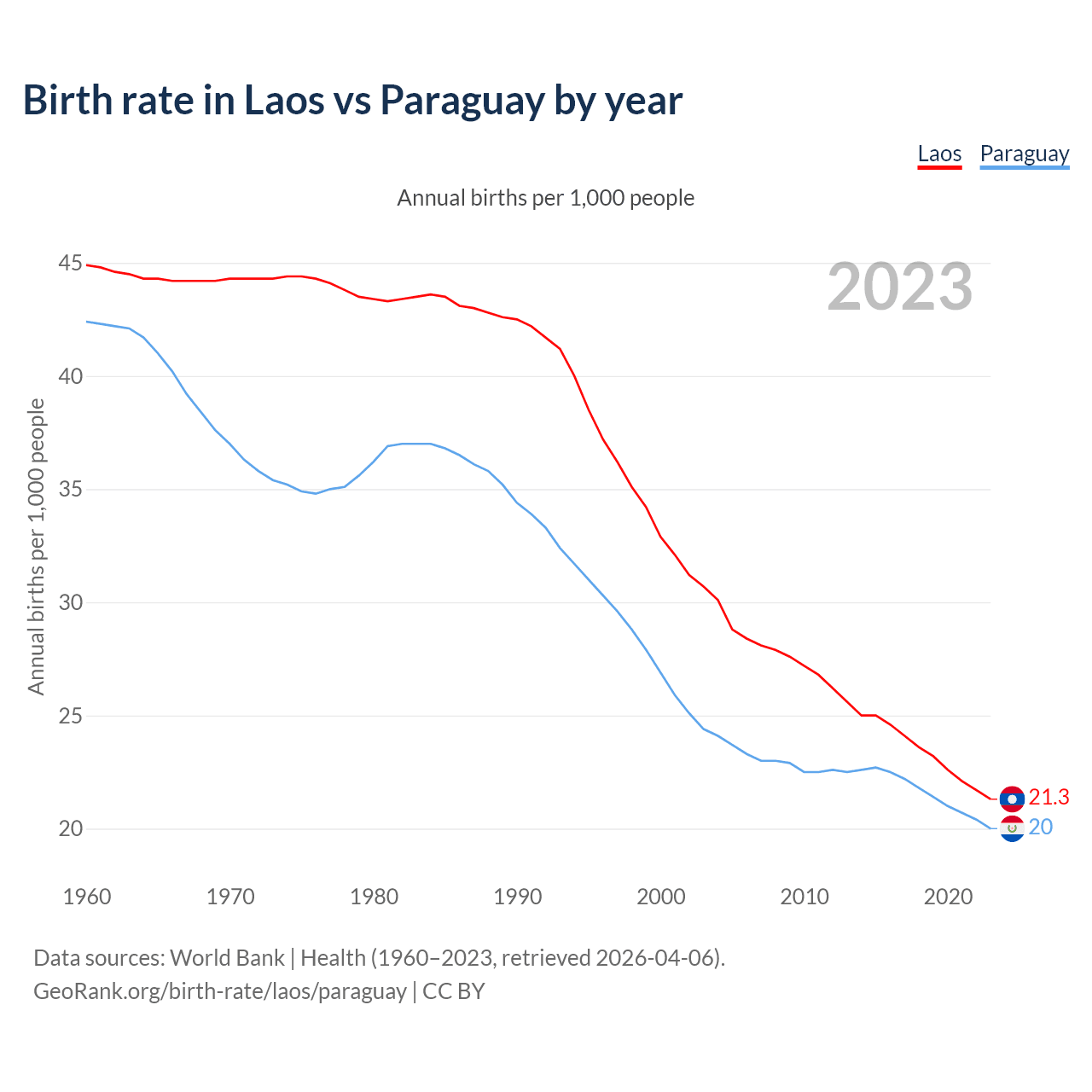 GeoRank.org/birth-rate/laos/paraguay | CC BY