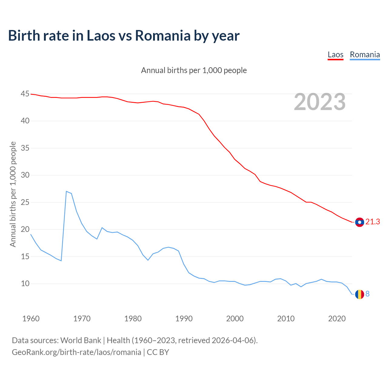 GeoRank.org/birth-rate/laos/romania | CC BY