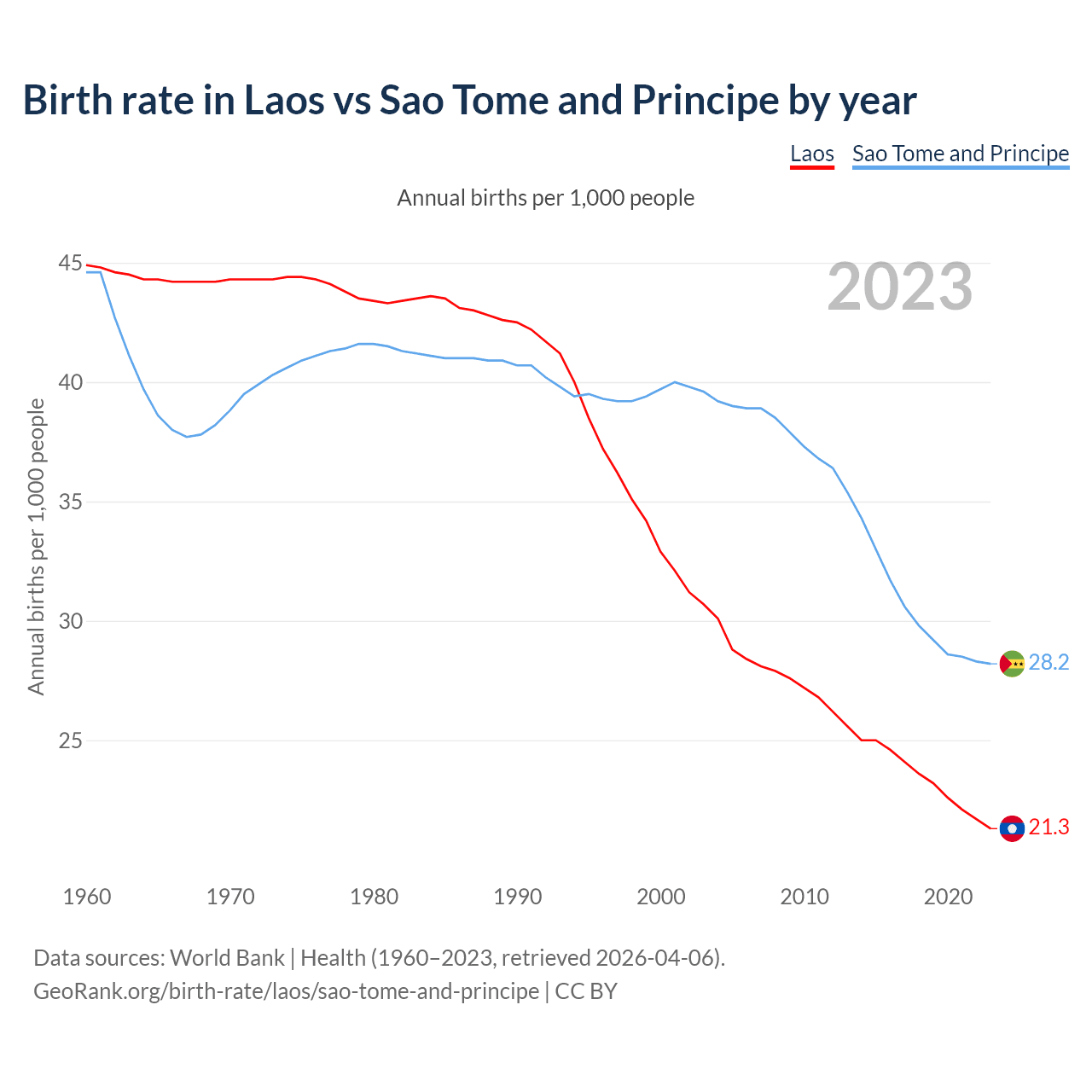 GeoRank.org/birth-rate/laos/sao-tome-and-principe | CC BY