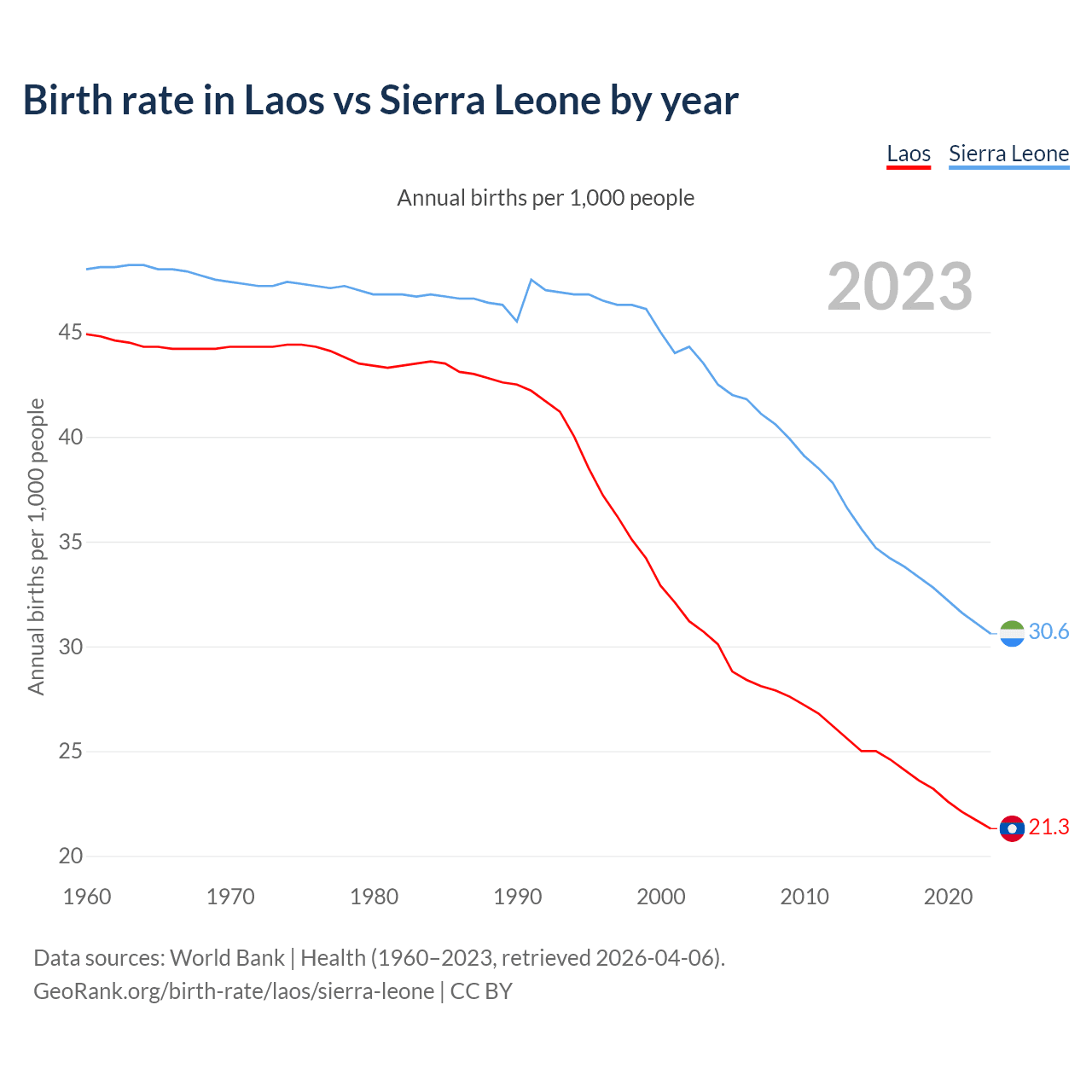 GeoRank.org/birth-rate/laos/sierra-leone | CC BY