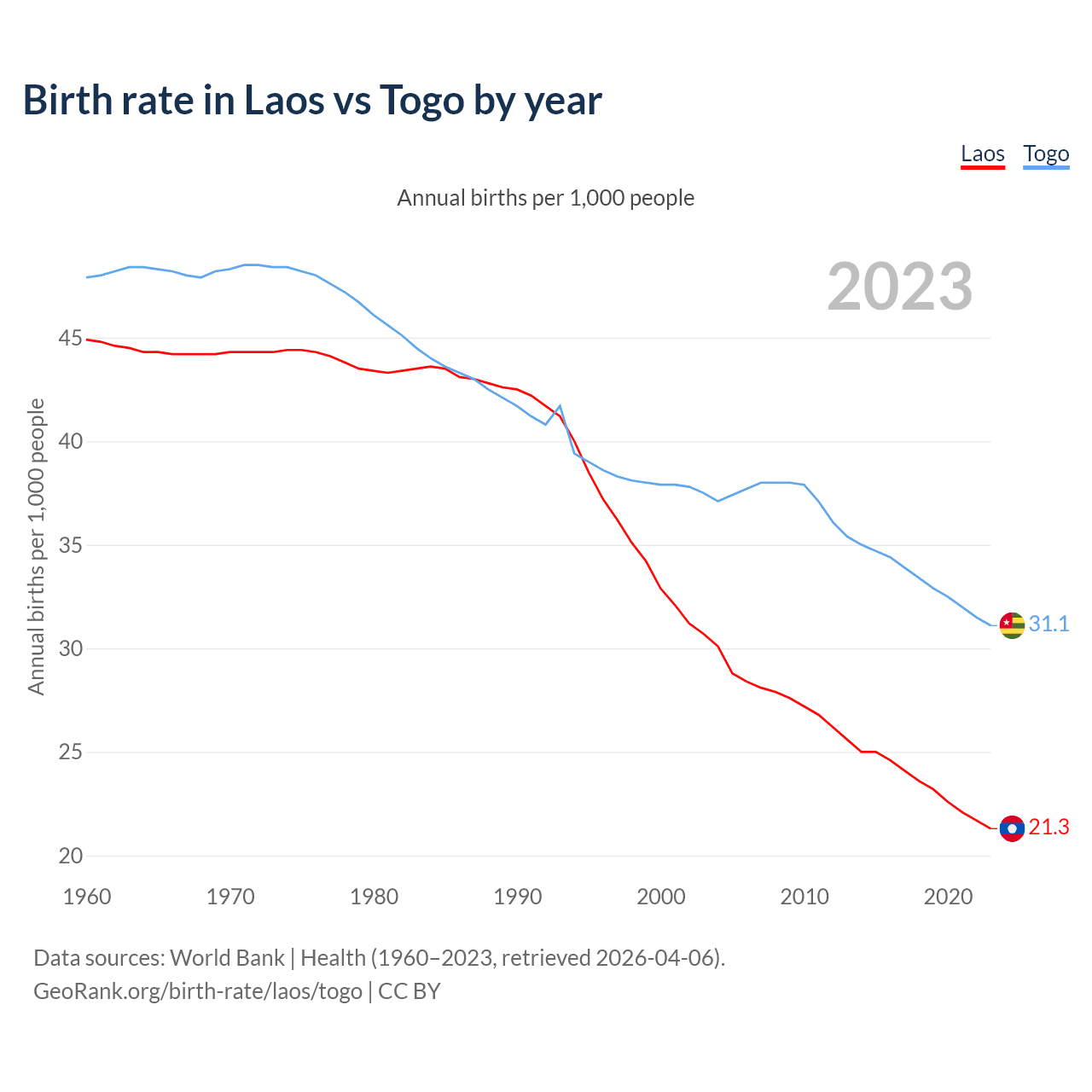 GeoRank.org/birth-rate/laos/togo | CC BY