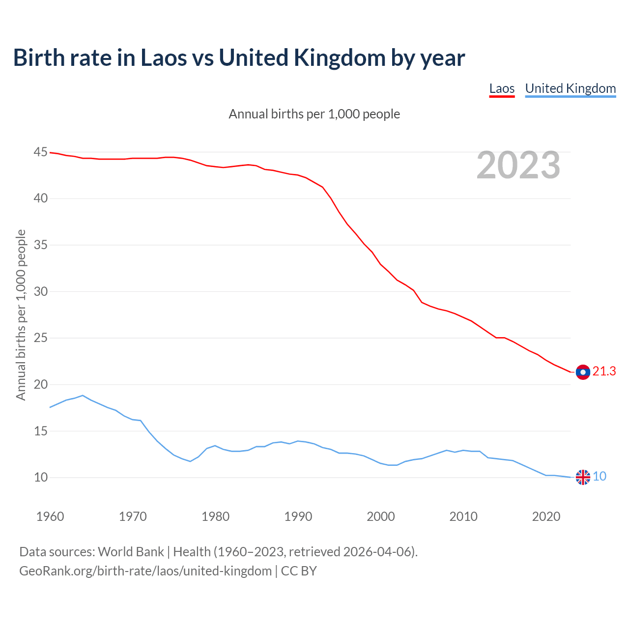 GeoRank.org/birth-rate/laos/united-kingdom | CC BY