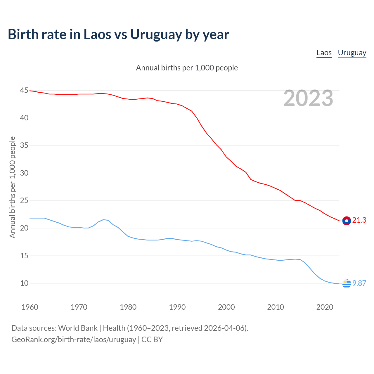 GeoRank.org/birth-rate/laos/uruguay | CC BY