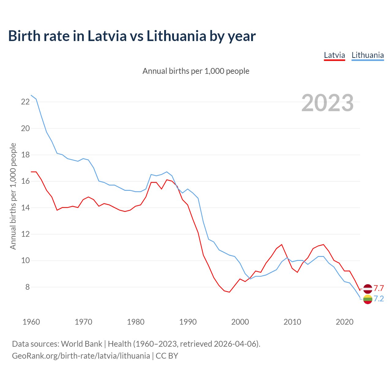 GeoRank.org/birth-rate/latvia/lithuania | CC BY