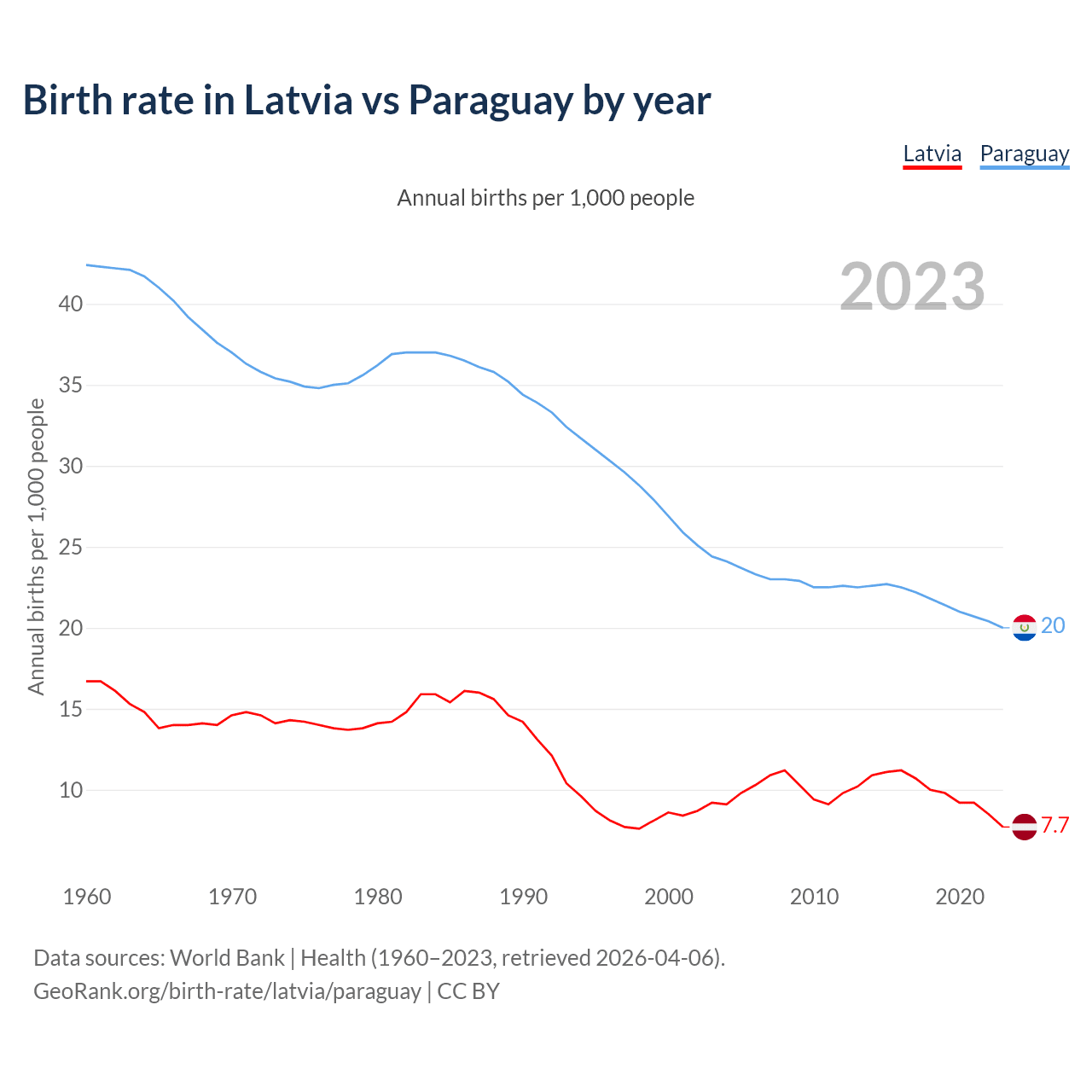 GeoRank.org/birth-rate/latvia/paraguay | CC BY