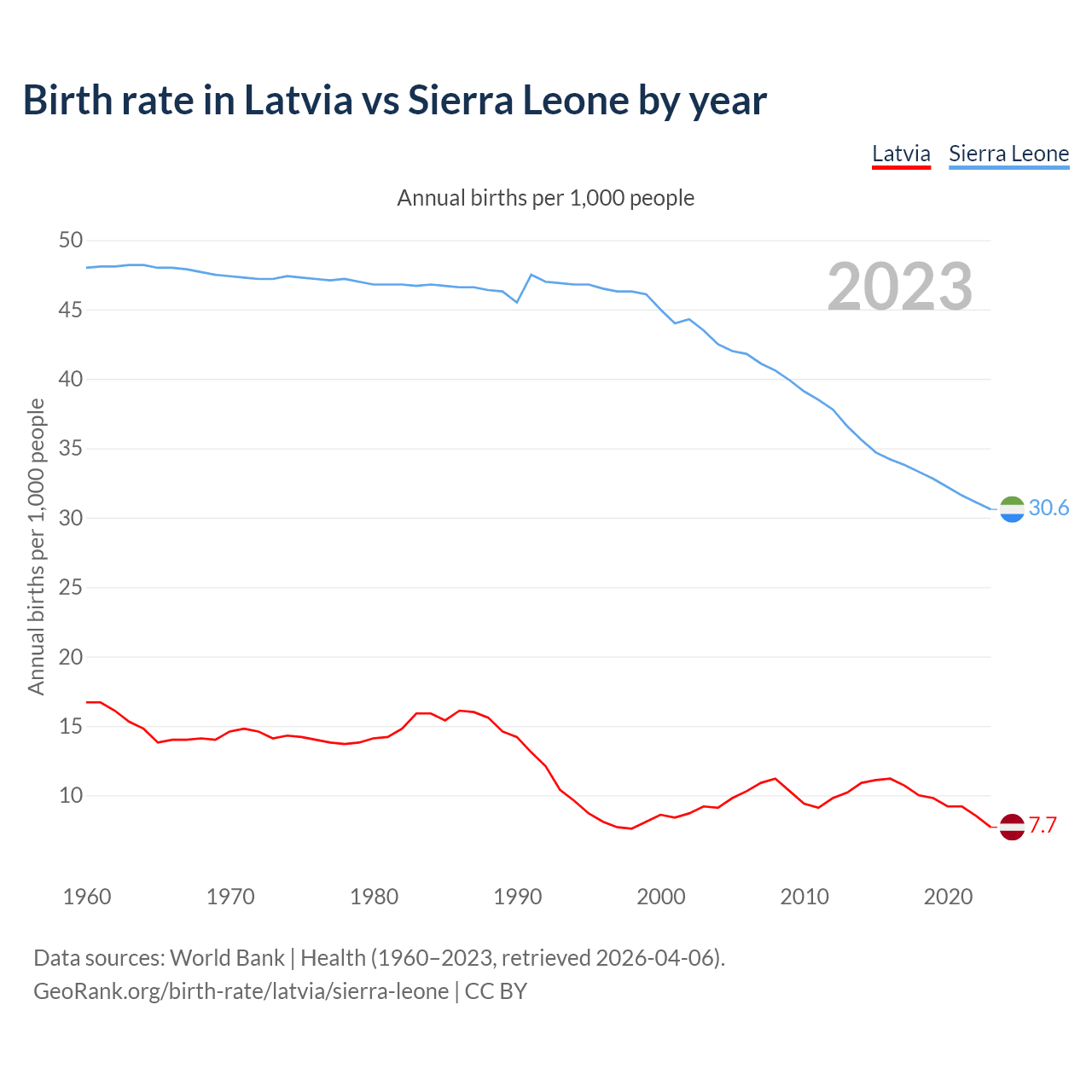 GeoRank.org/birth-rate/latvia/sierra-leone | CC BY
