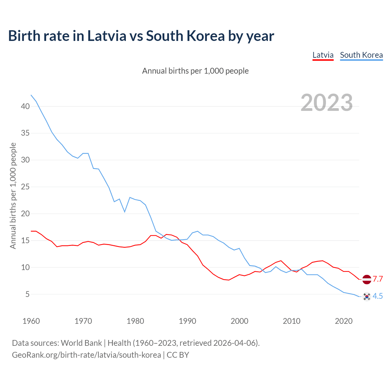 GeoRank.org/birth-rate/latvia/south-korea | CC BY