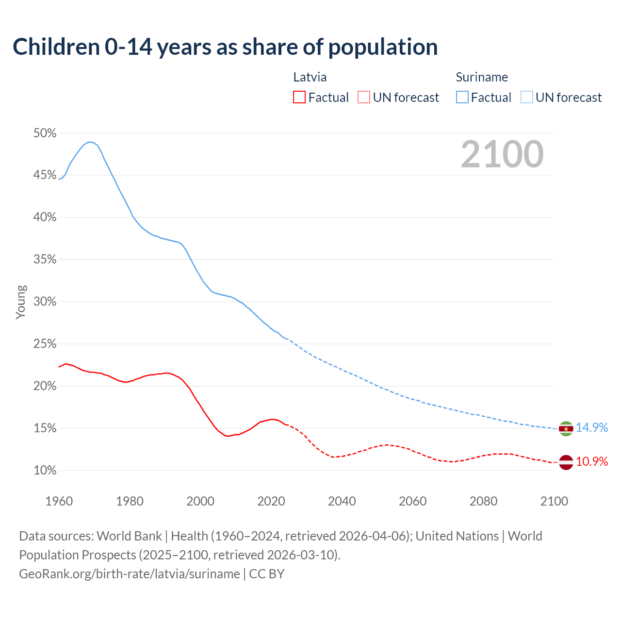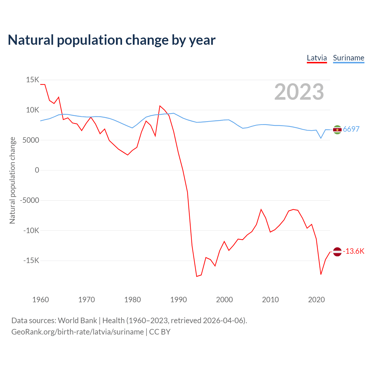GeoRank.org/birth-rate/latvia/suriname | CC BY