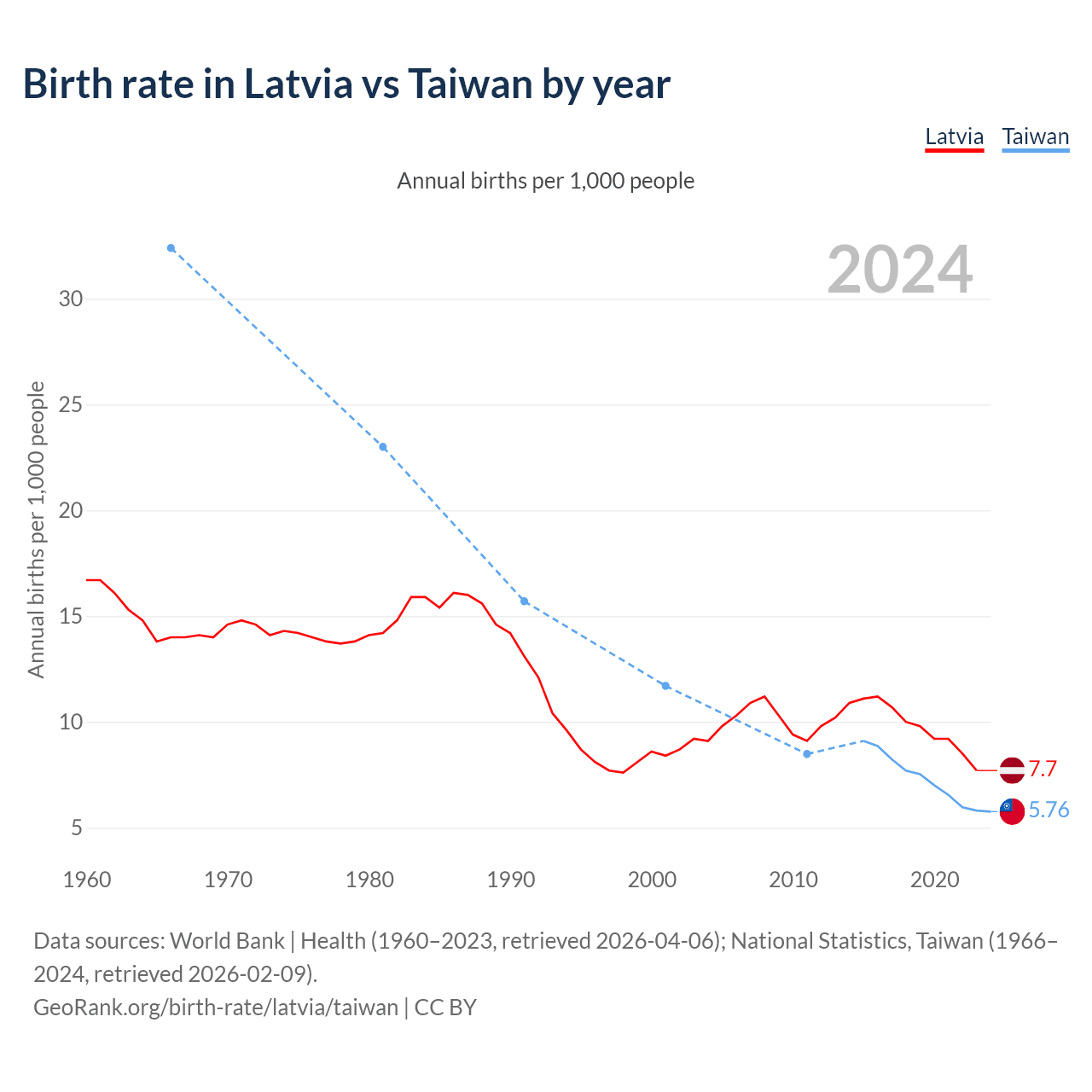GeoRank.org/birth-rate/latvia/taiwan | CC BY