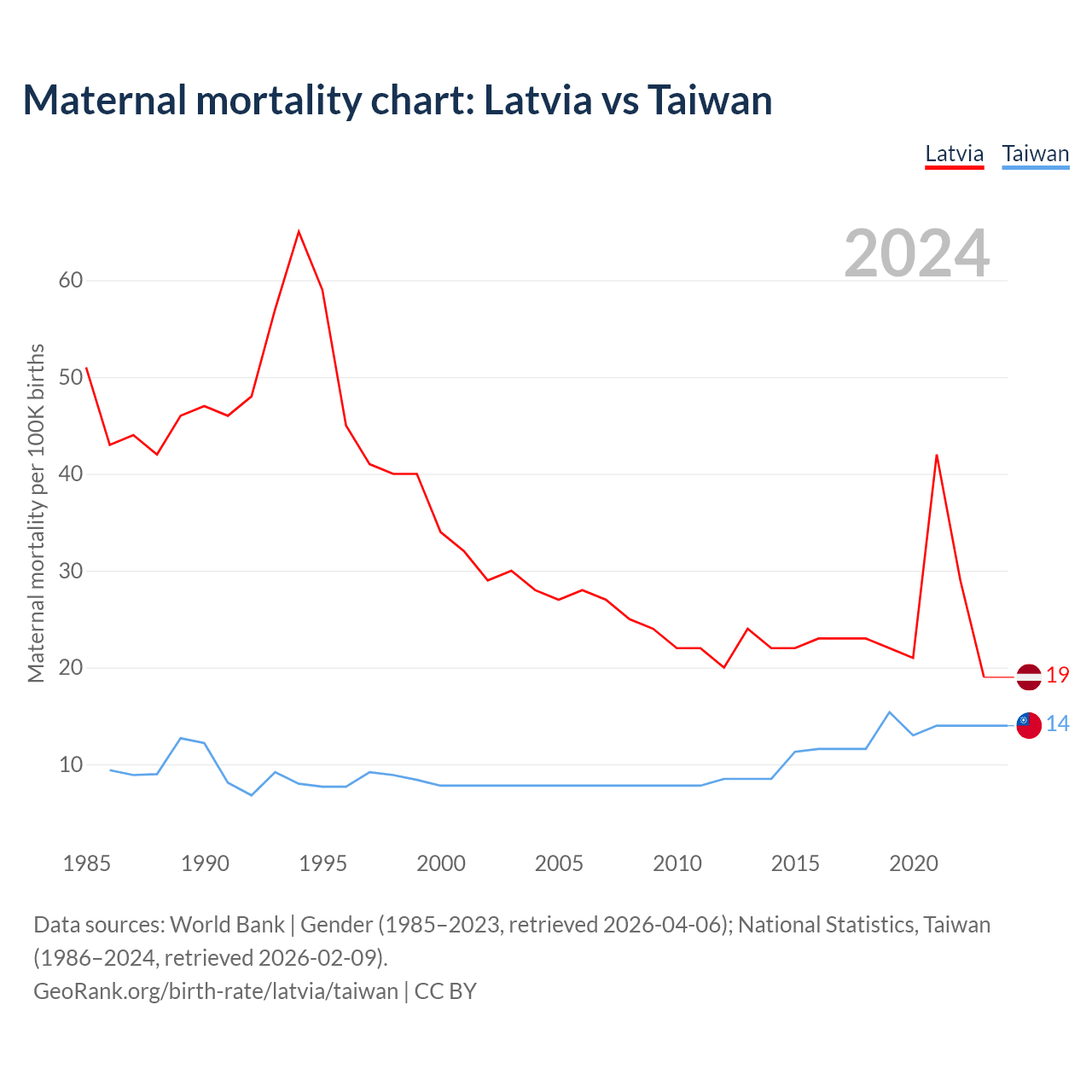 Maternal mortality chart: Latvia vs Taiwan