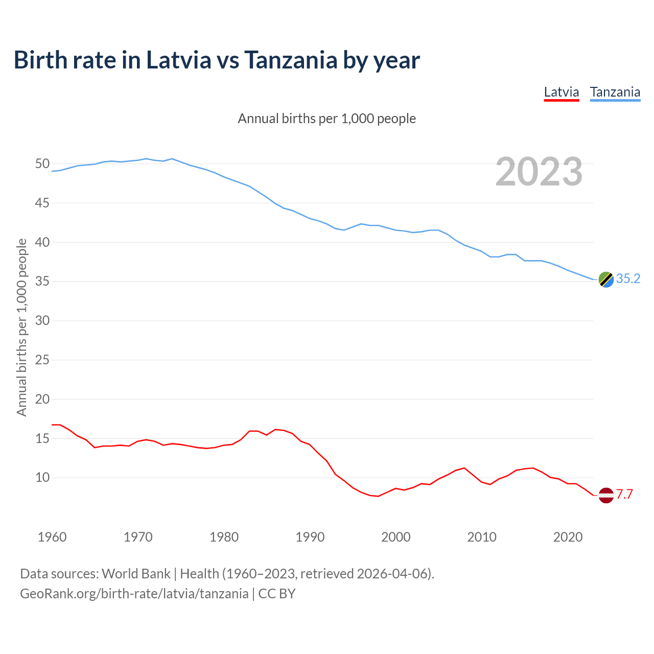 GeoRank.org/birth-rate/latvia/tanzania | CC BY