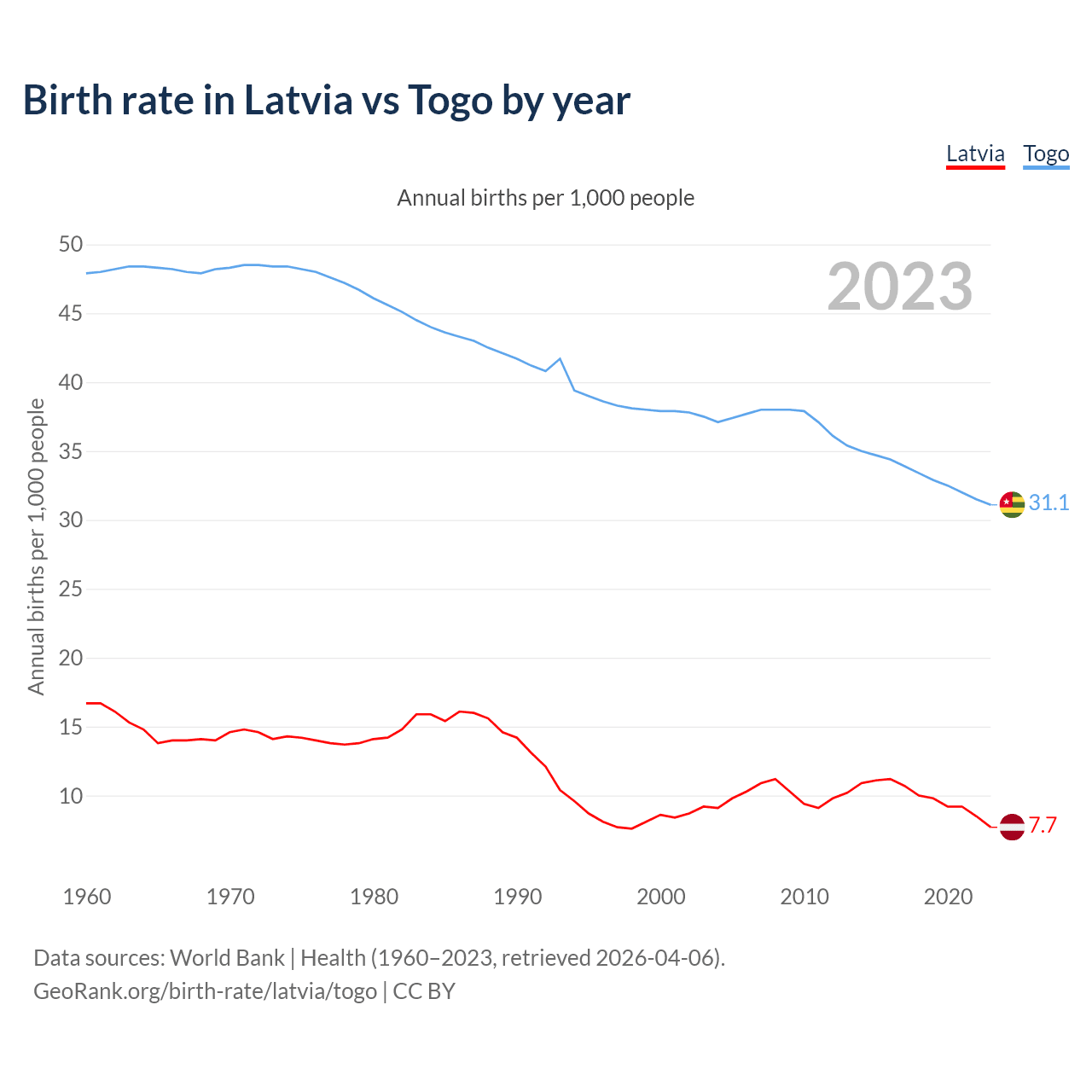 GeoRank.org/birth-rate/latvia/togo | CC BY