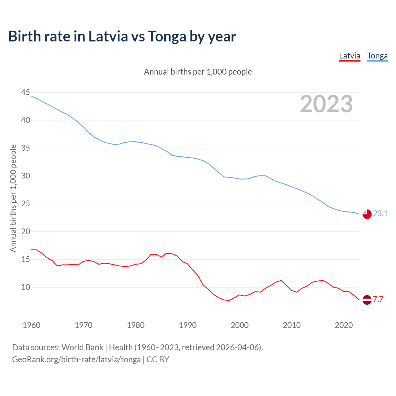 GeoRank.org/birth-rate/latvia/tonga | CC BY