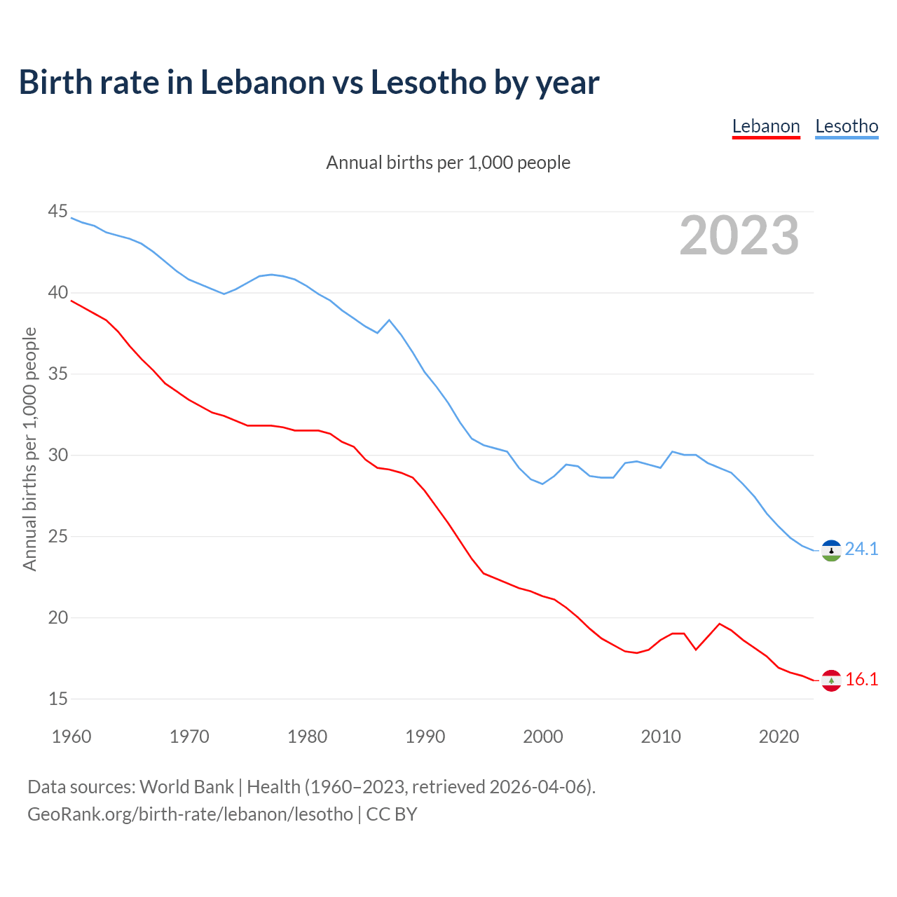 GeoRank.org/birth-rate/lebanon/lesotho | CC BY