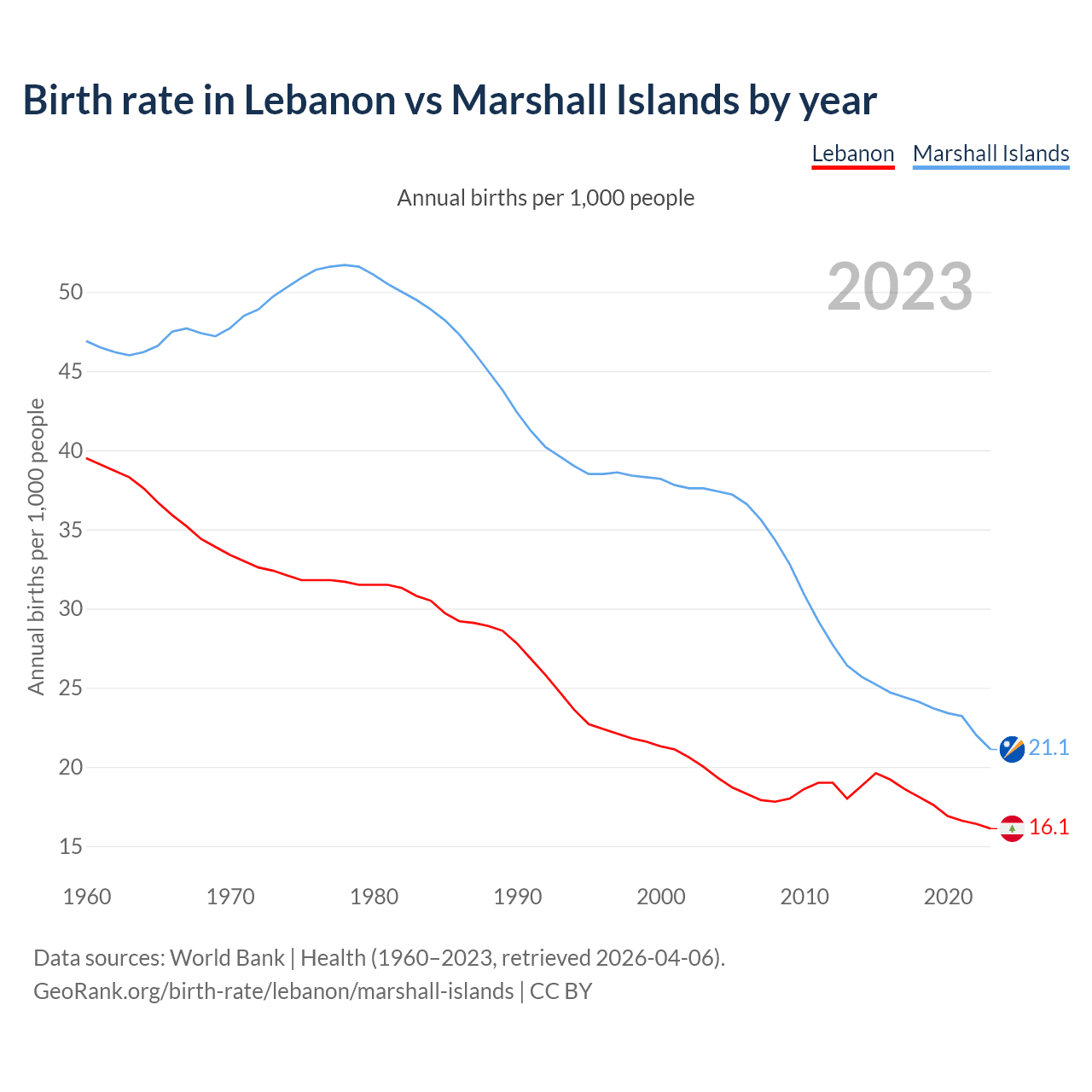 GeoRank.org/birth-rate/lebanon/marshall-islands | CC BY