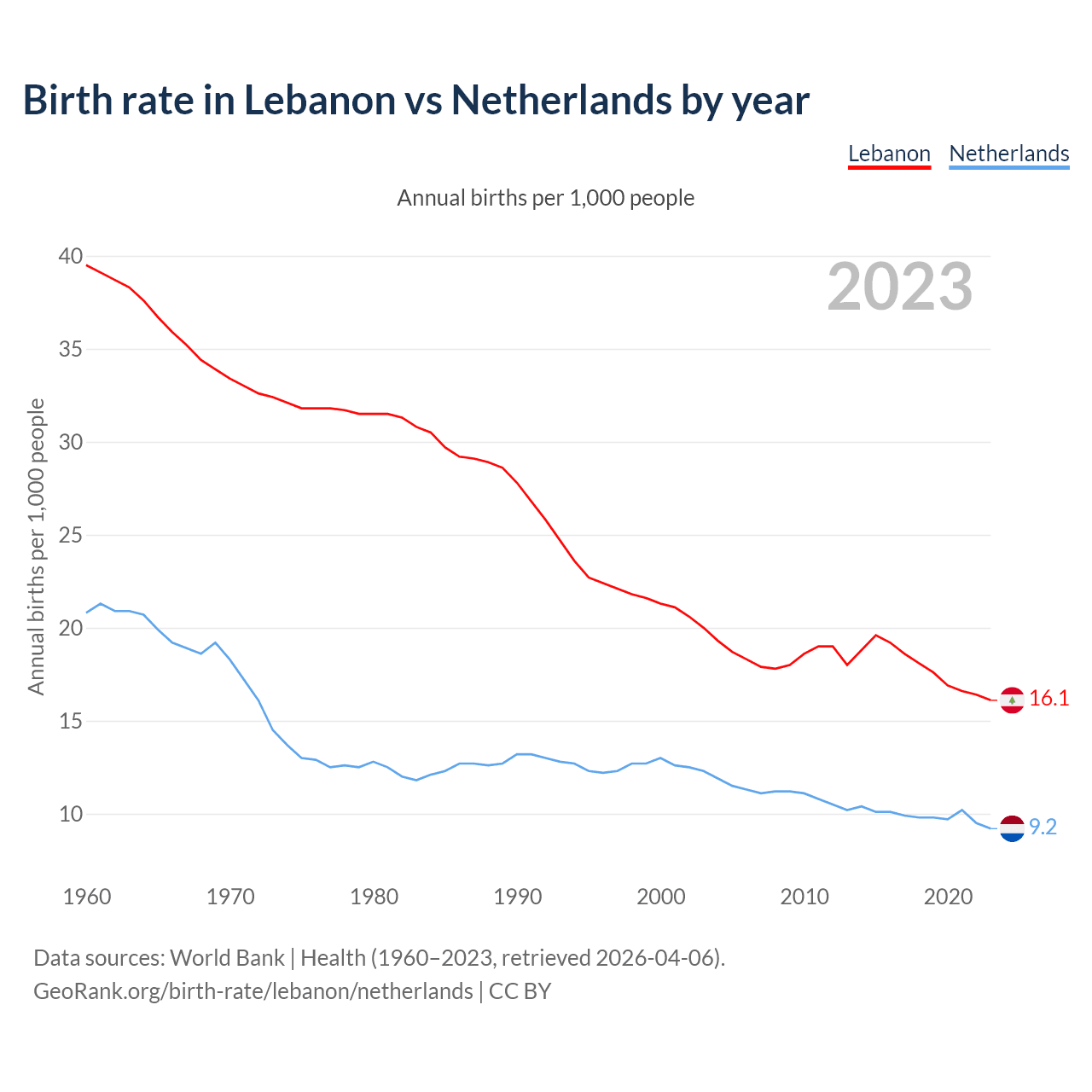GeoRank.org/birth-rate/lebanon/netherlands | CC BY