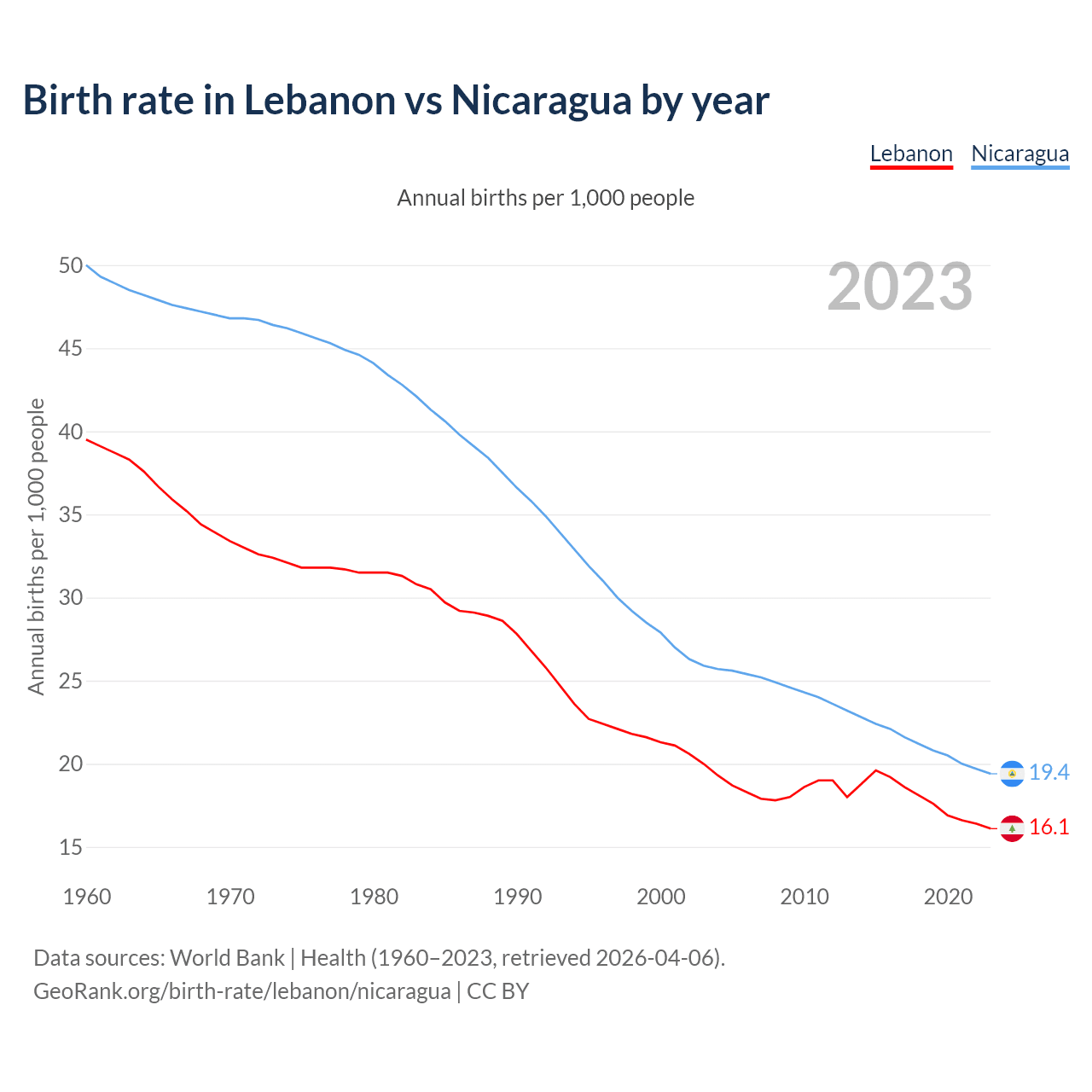 GeoRank.org/birth-rate/lebanon/nicaragua | CC BY