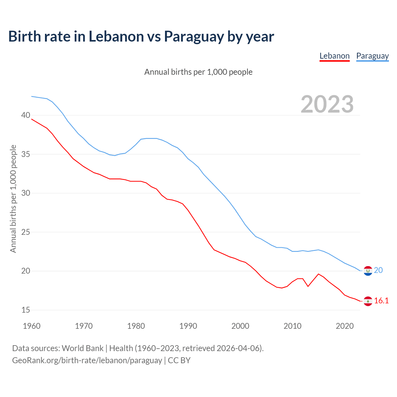 GeoRank.org/birth-rate/lebanon/paraguay | CC BY