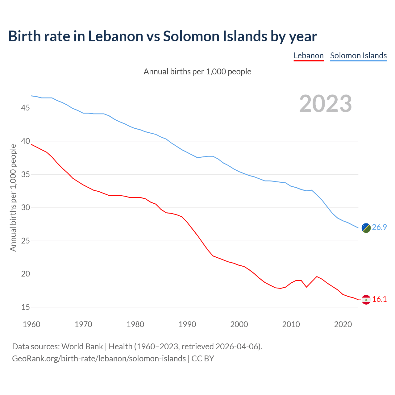GeoRank.org/birth-rate/lebanon/solomon-islands | CC BY