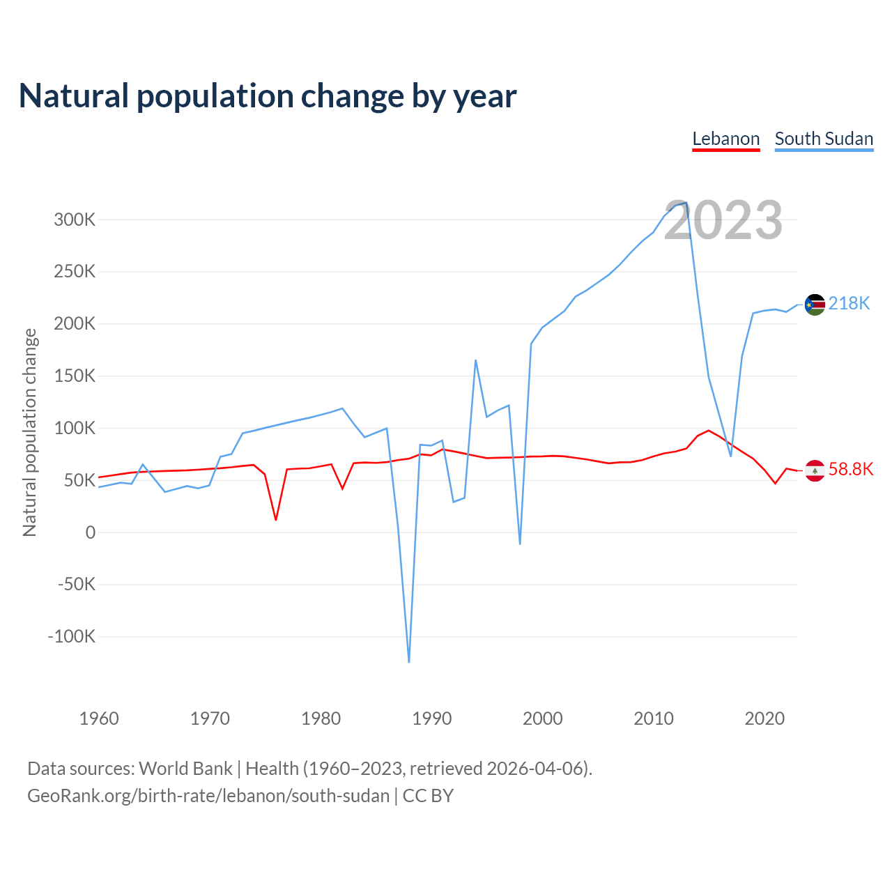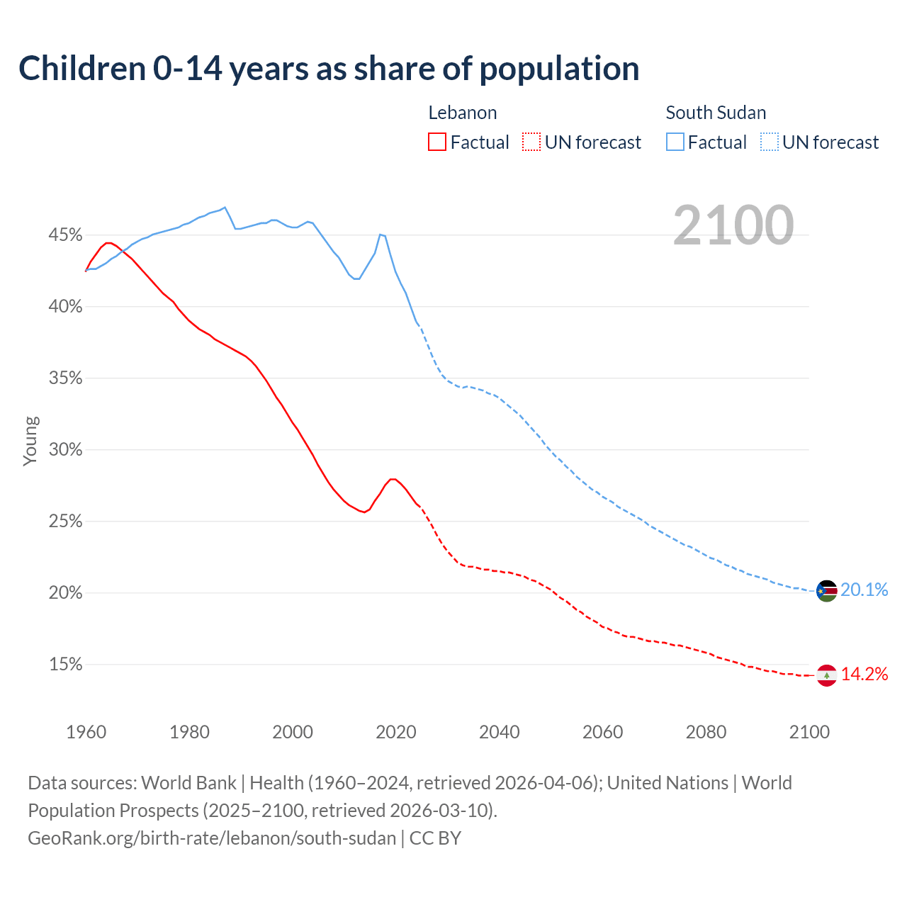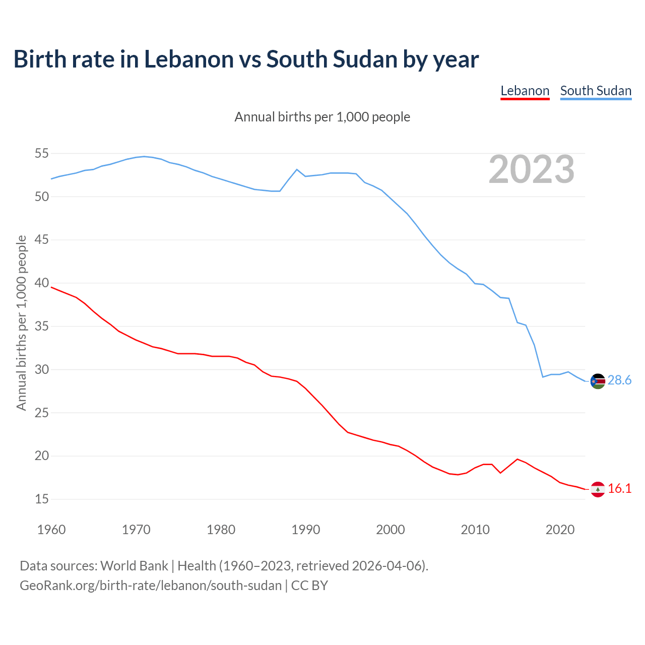 GeoRank.org/birth-rate/lebanon/south-sudan | CC BY