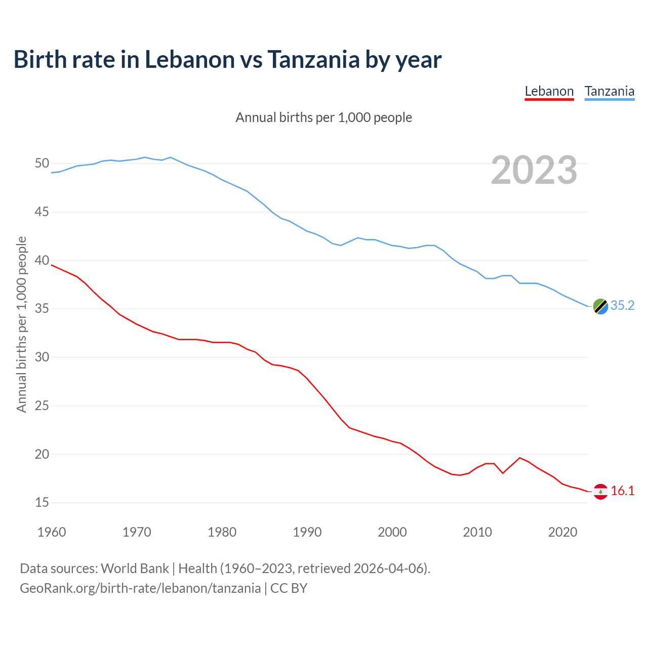 GeoRank.org/birth-rate/lebanon/tanzania | CC BY