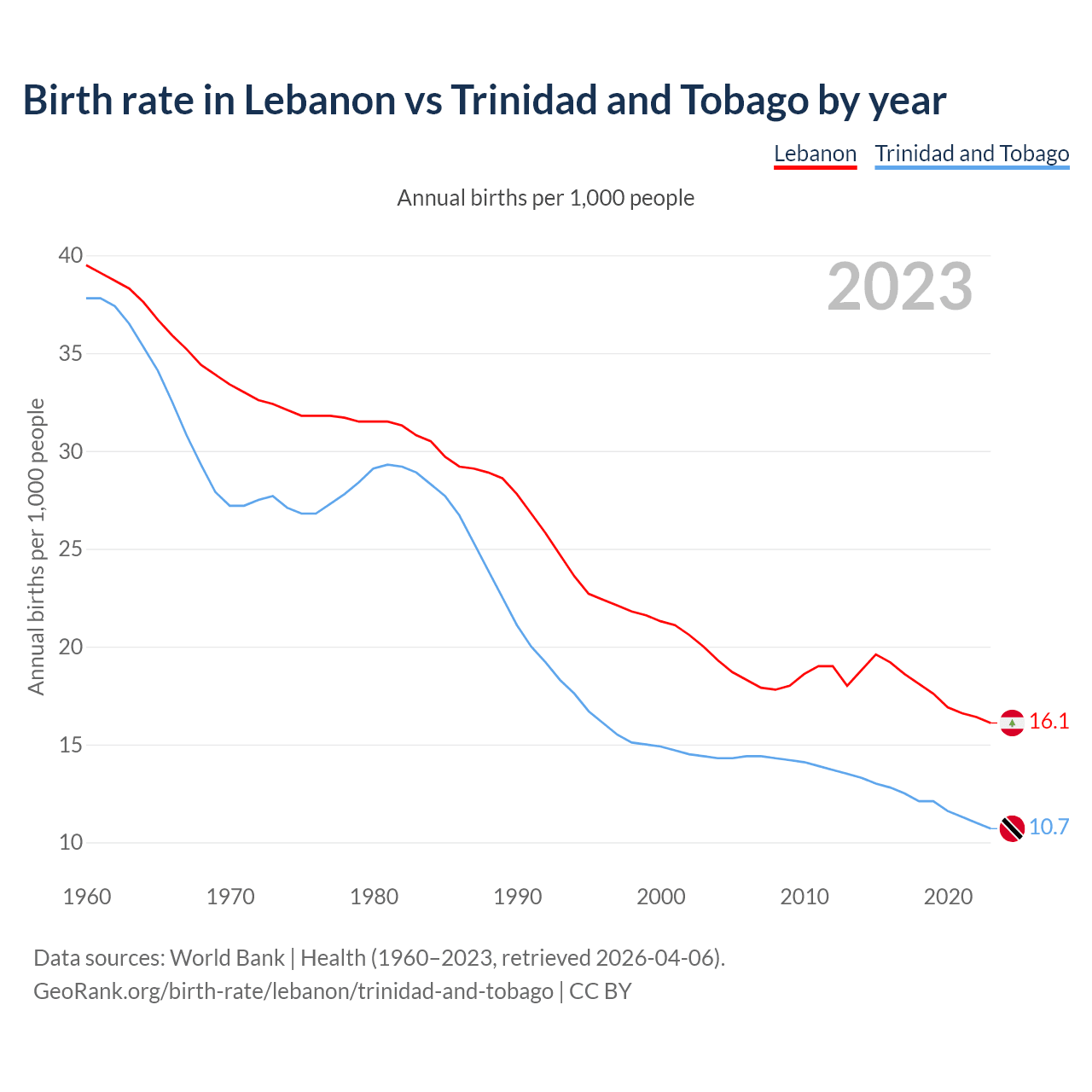 GeoRank.org/birth-rate/lebanon/trinidad-and-tobago | CC BY