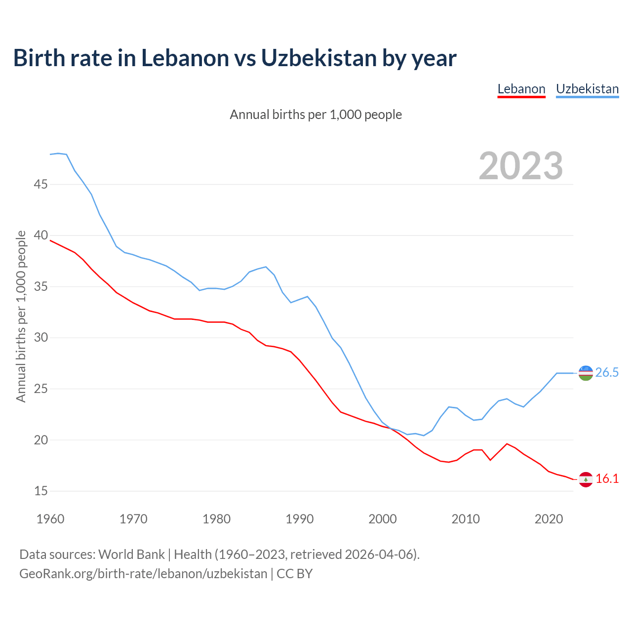 GeoRank.org/birth-rate/lebanon/uzbekistan | CC BY