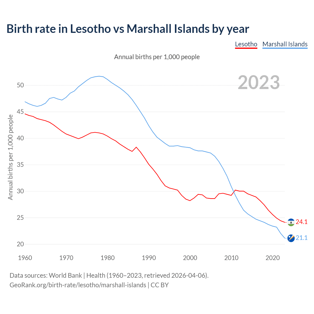 GeoRank.org/birth-rate/lesotho/marshall-islands | CC BY