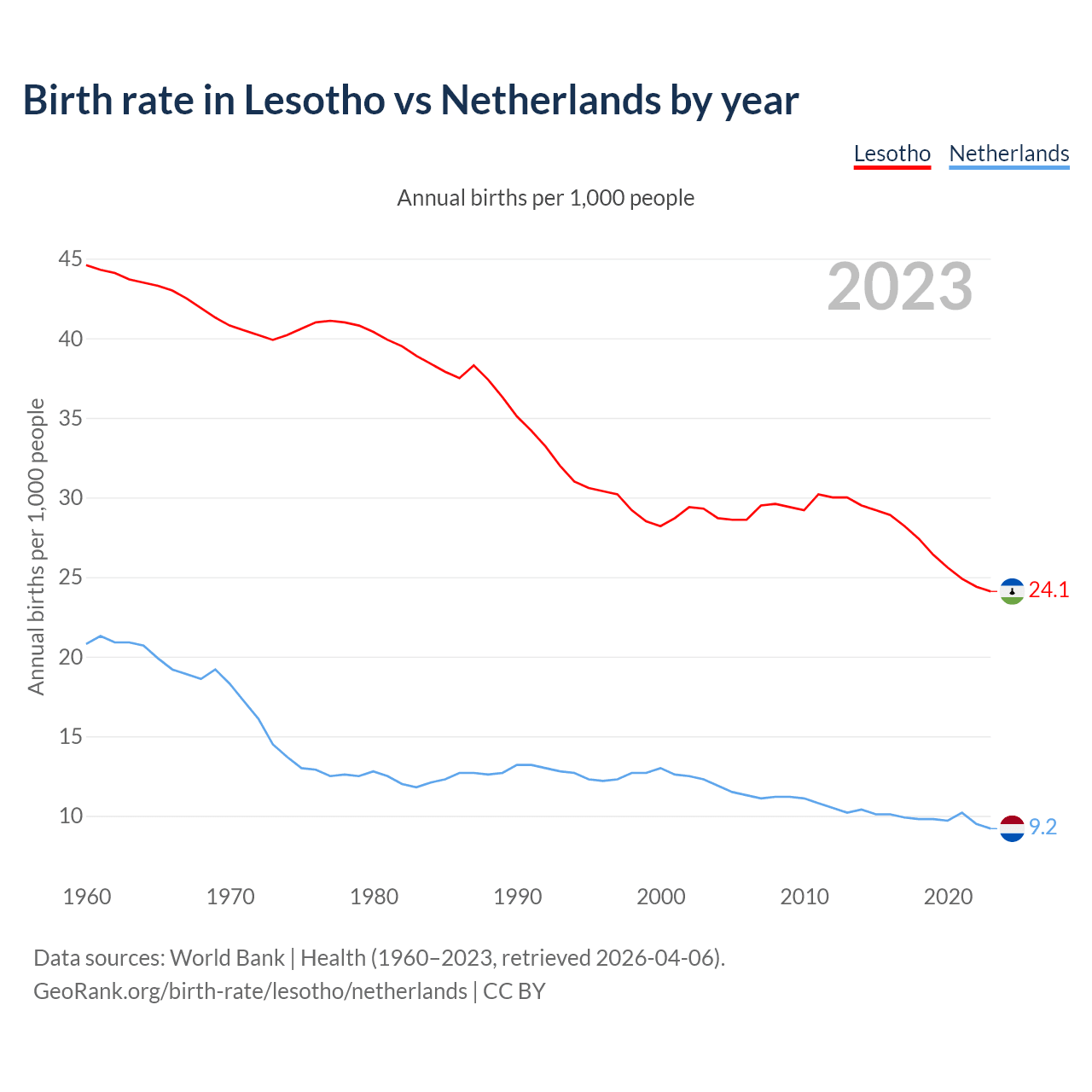 GeoRank.org/birth-rate/lesotho/netherlands | CC BY