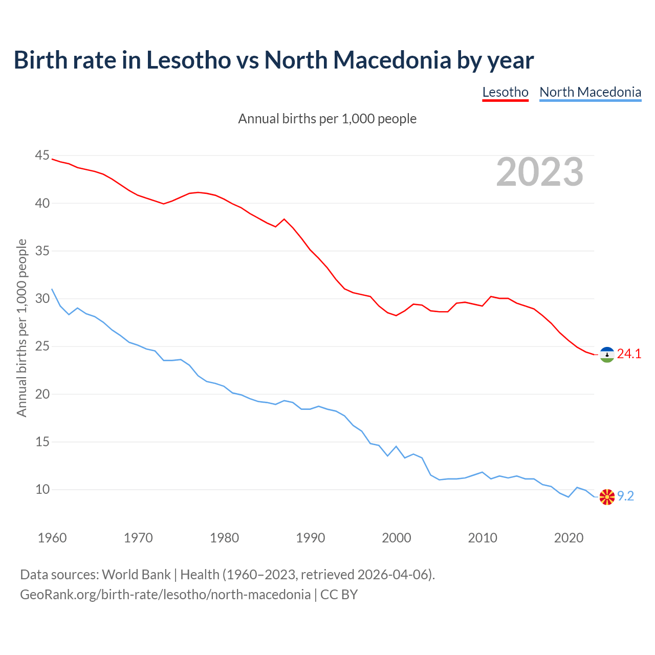 GeoRank.org/birth-rate/lesotho/north-macedonia | CC BY