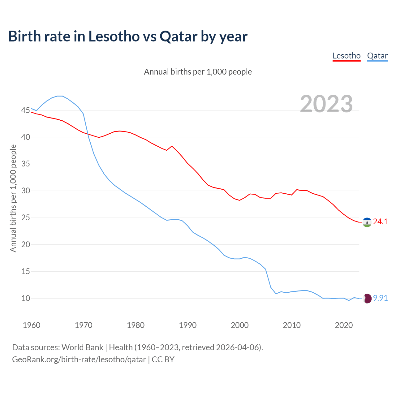 GeoRank.org/birth-rate/lesotho/qatar | CC BY