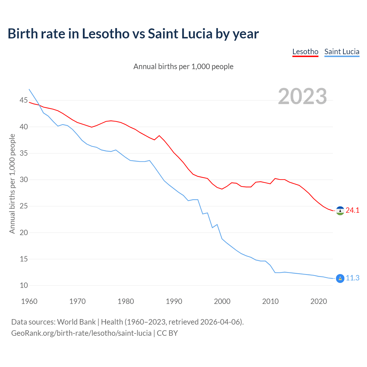 GeoRank.org/birth-rate/lesotho/saint-lucia | CC BY