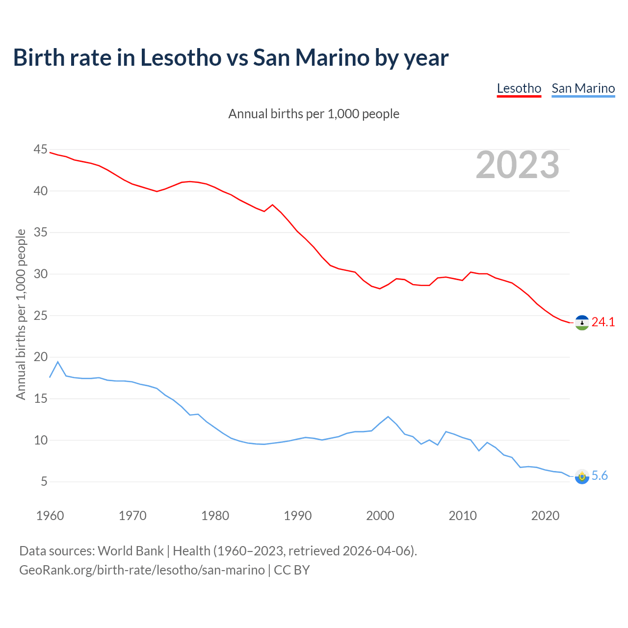 GeoRank.org/birth-rate/lesotho/san-marino | CC BY