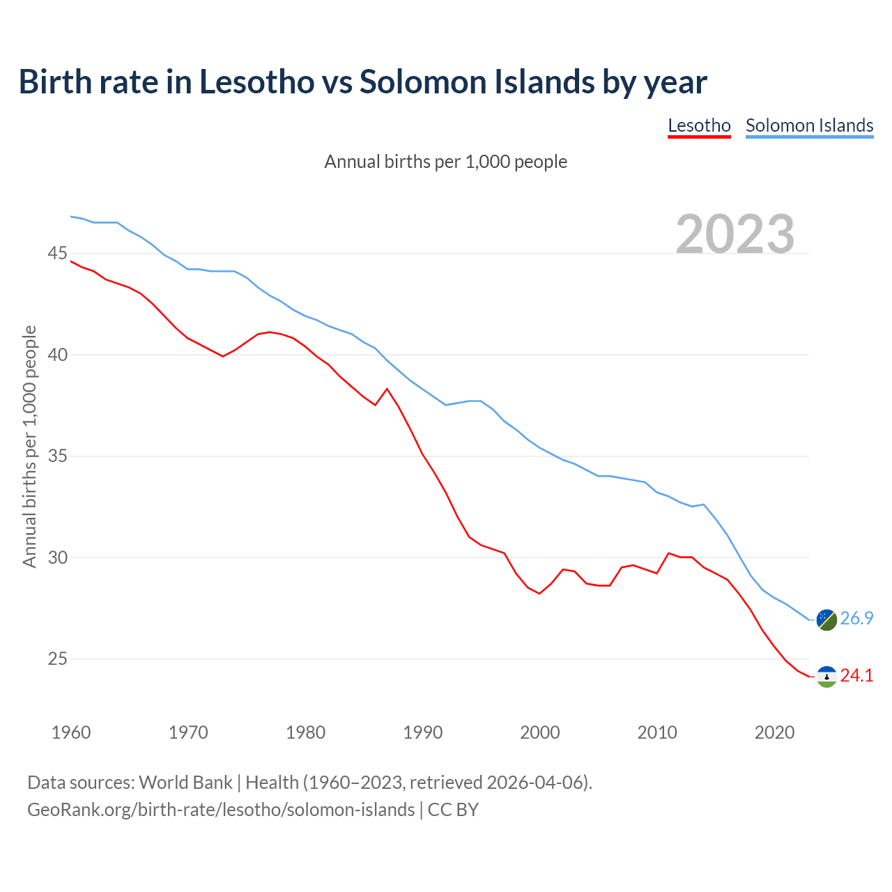 GeoRank.org/birth-rate/lesotho/solomon-islands | CC BY