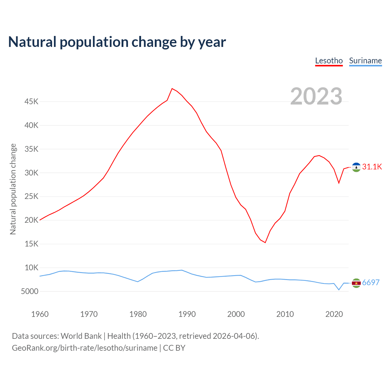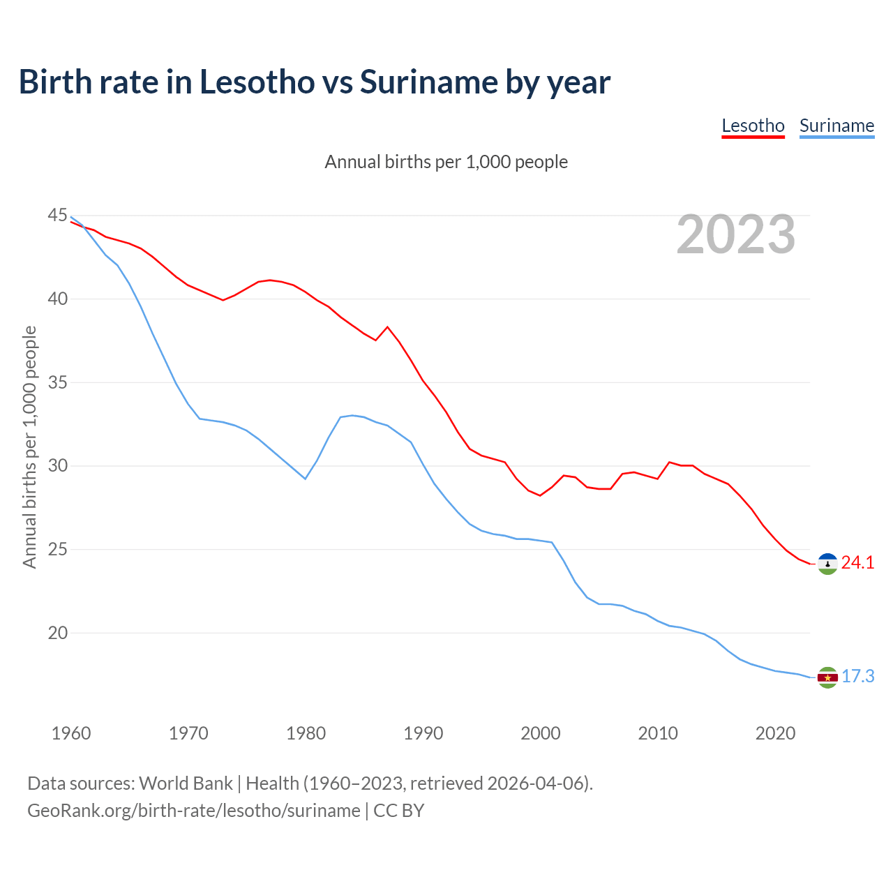 GeoRank.org/birth-rate/lesotho/suriname | CC BY