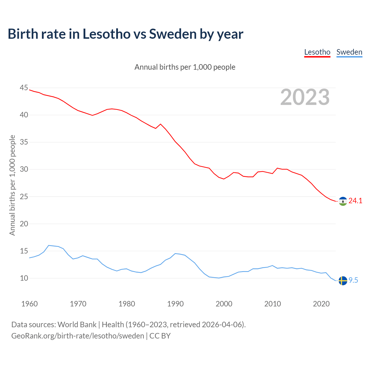 GeoRank.org/birth-rate/lesotho/sweden | CC BY