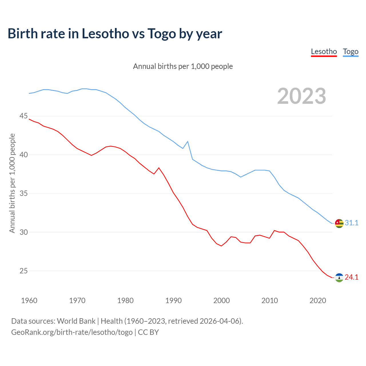 GeoRank.org/birth-rate/lesotho/togo | CC BY