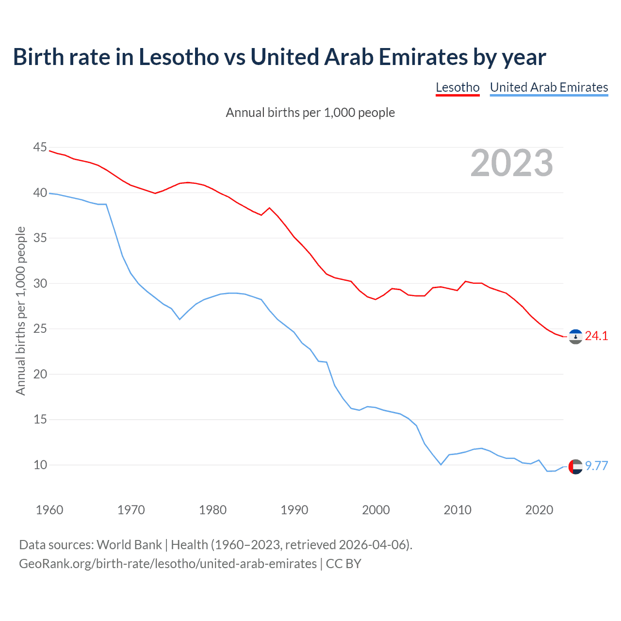 GeoRank.org/birth-rate/lesotho/united-arab-emirates | CC BY