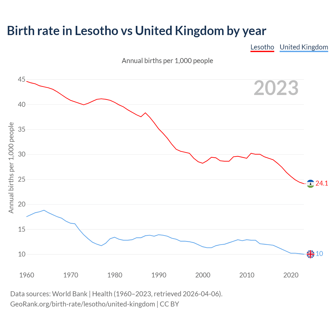 GeoRank.org/birth-rate/lesotho/united-kingdom | CC BY