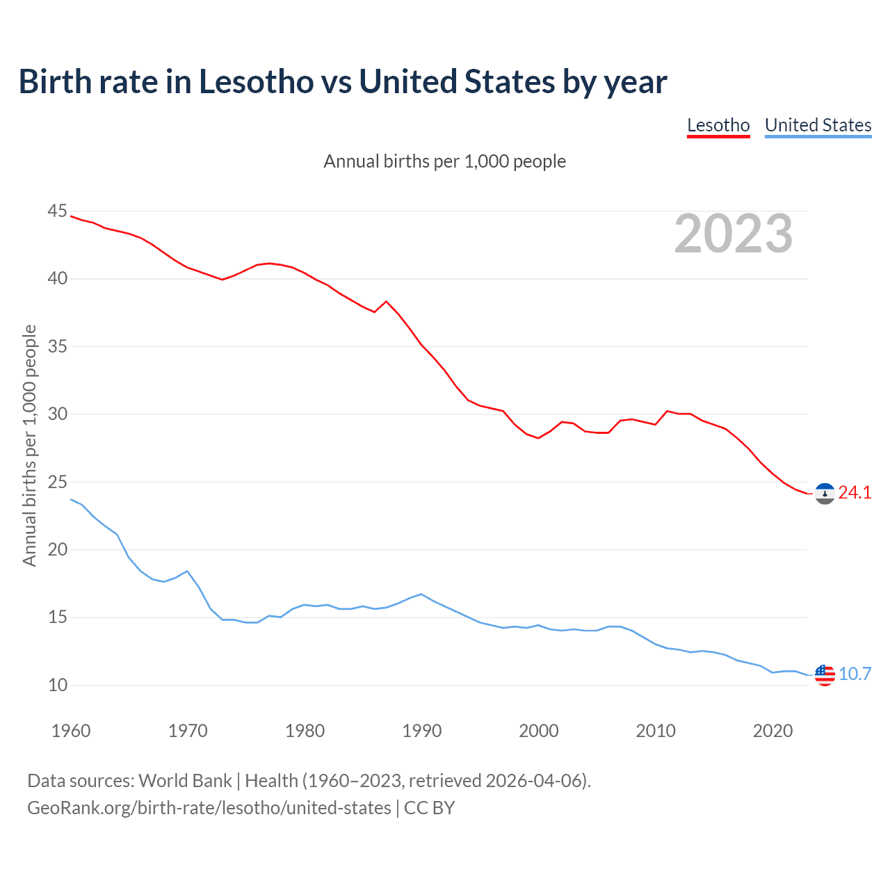 GeoRank.org/birth-rate/lesotho/united-states | CC BY