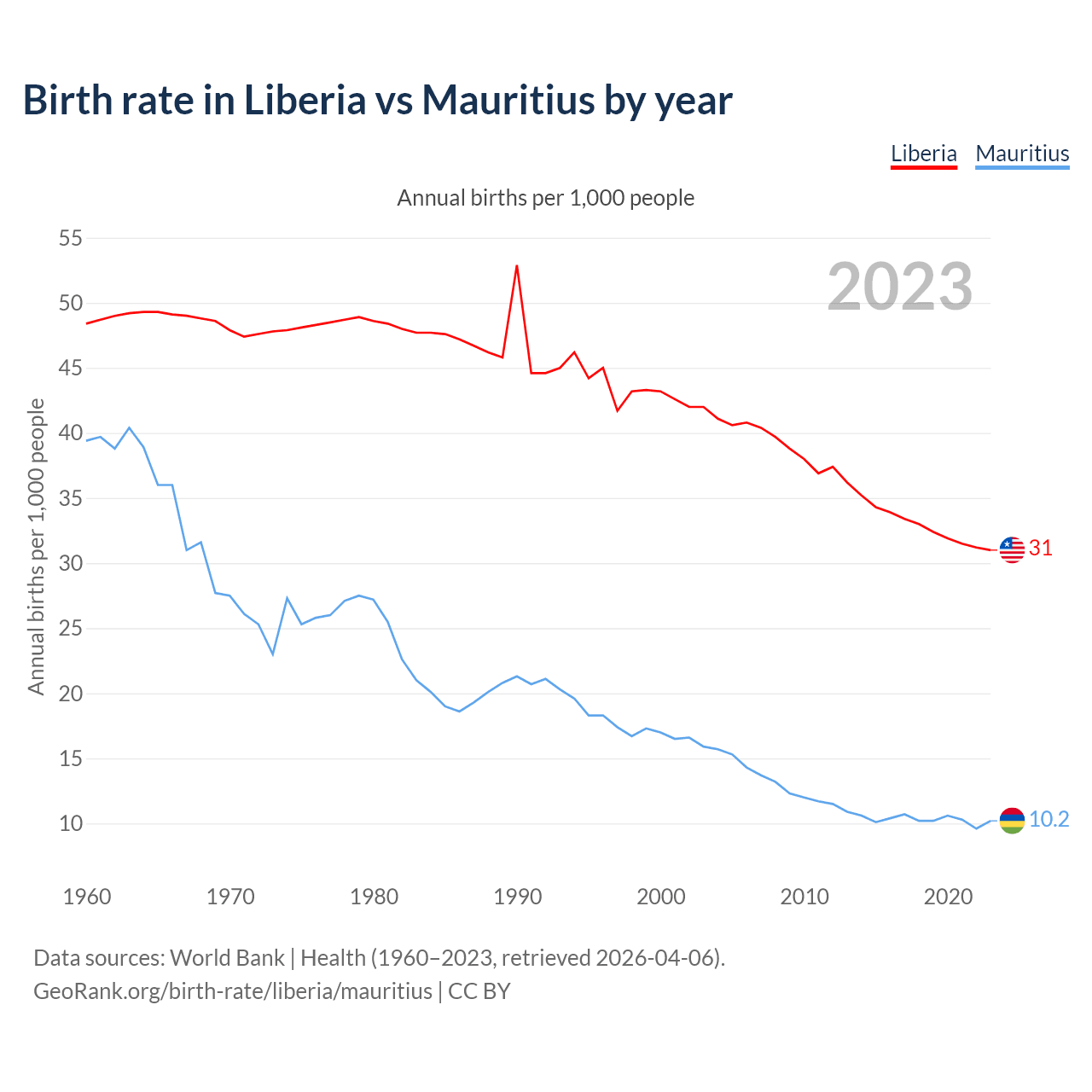 GeoRank.org/birth-rate/liberia/mauritius | CC BY