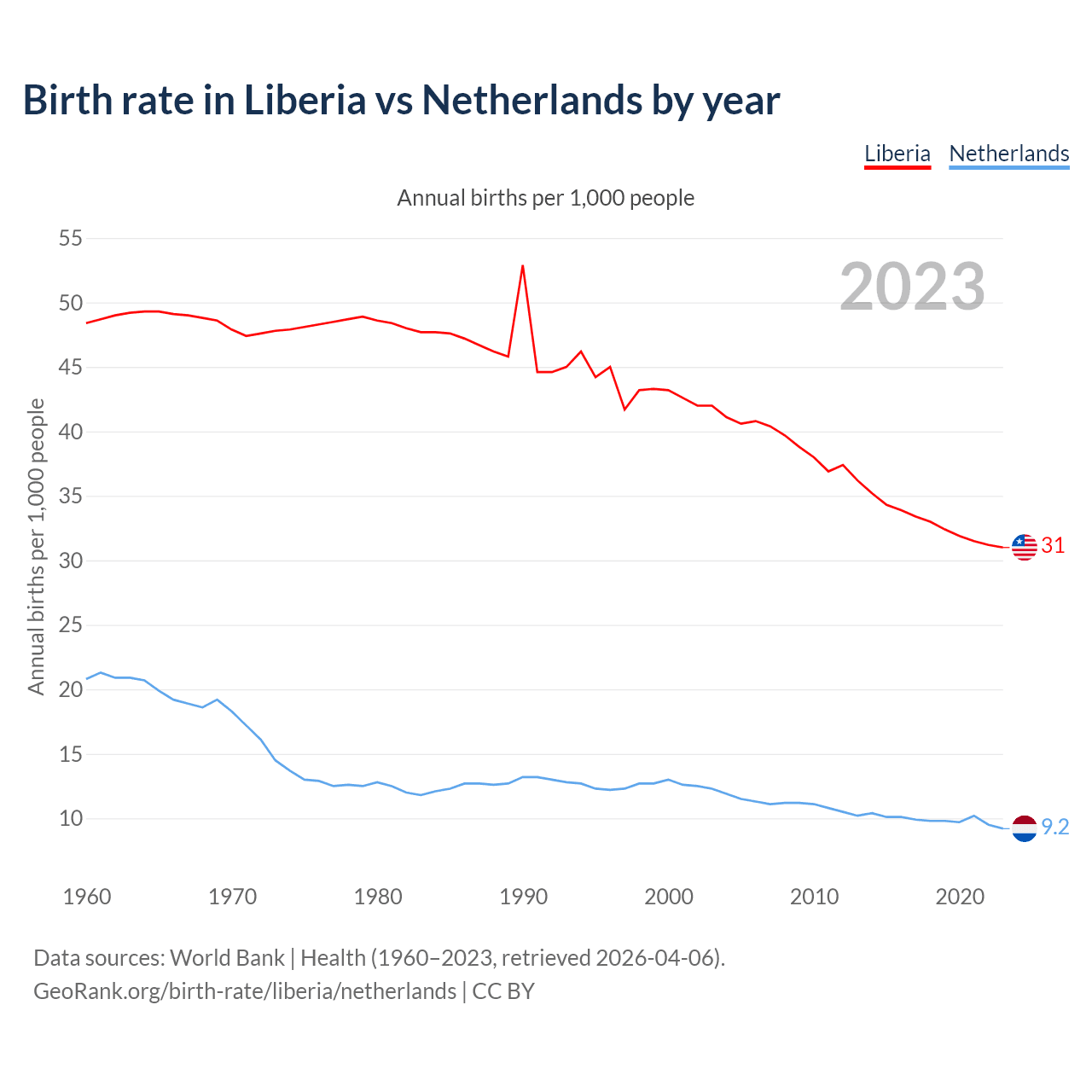 GeoRank.org/birth-rate/liberia/netherlands | CC BY