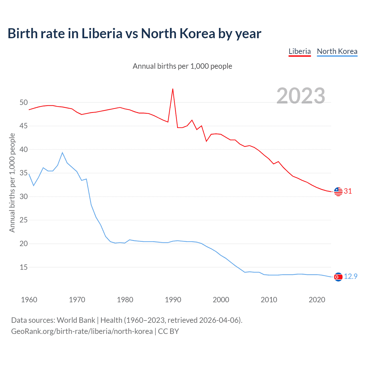 GeoRank.org/birth-rate/liberia/north-korea | CC BY