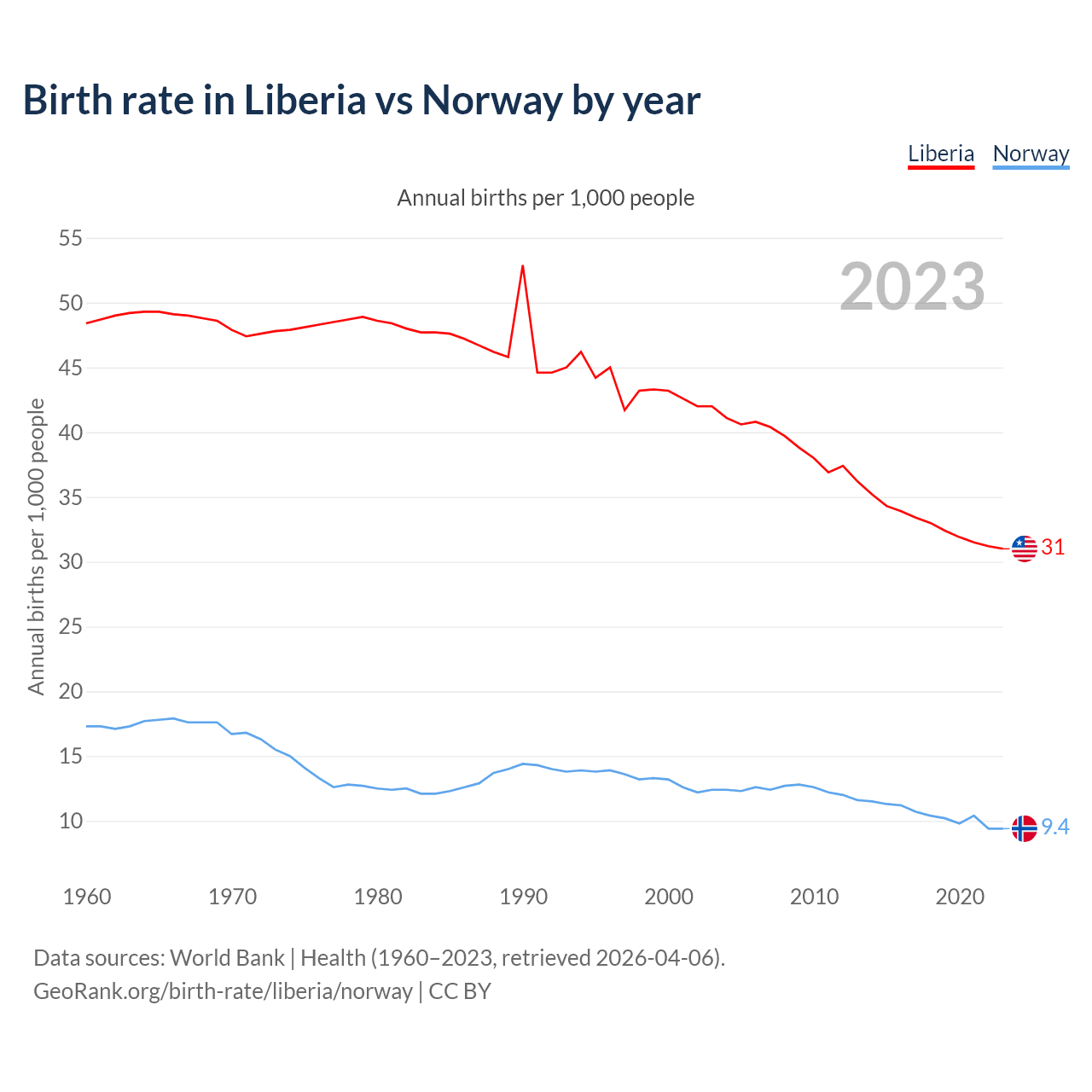 GeoRank.org/birth-rate/liberia/norway | CC BY