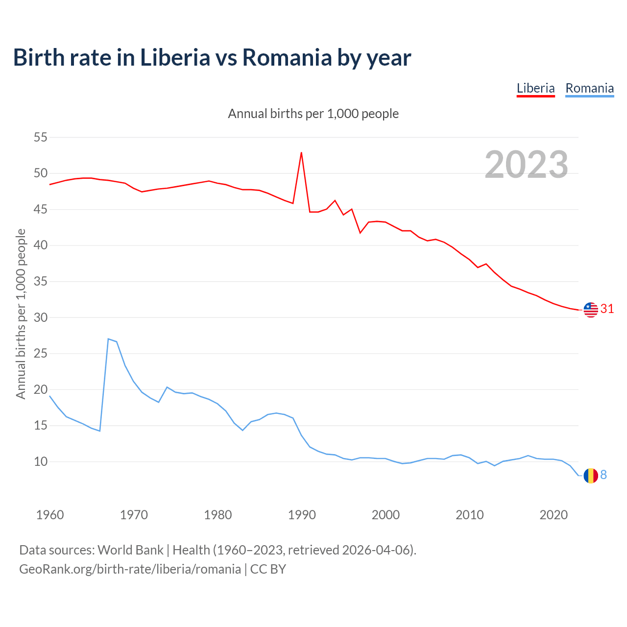 GeoRank.org/birth-rate/liberia/romania | CC BY
