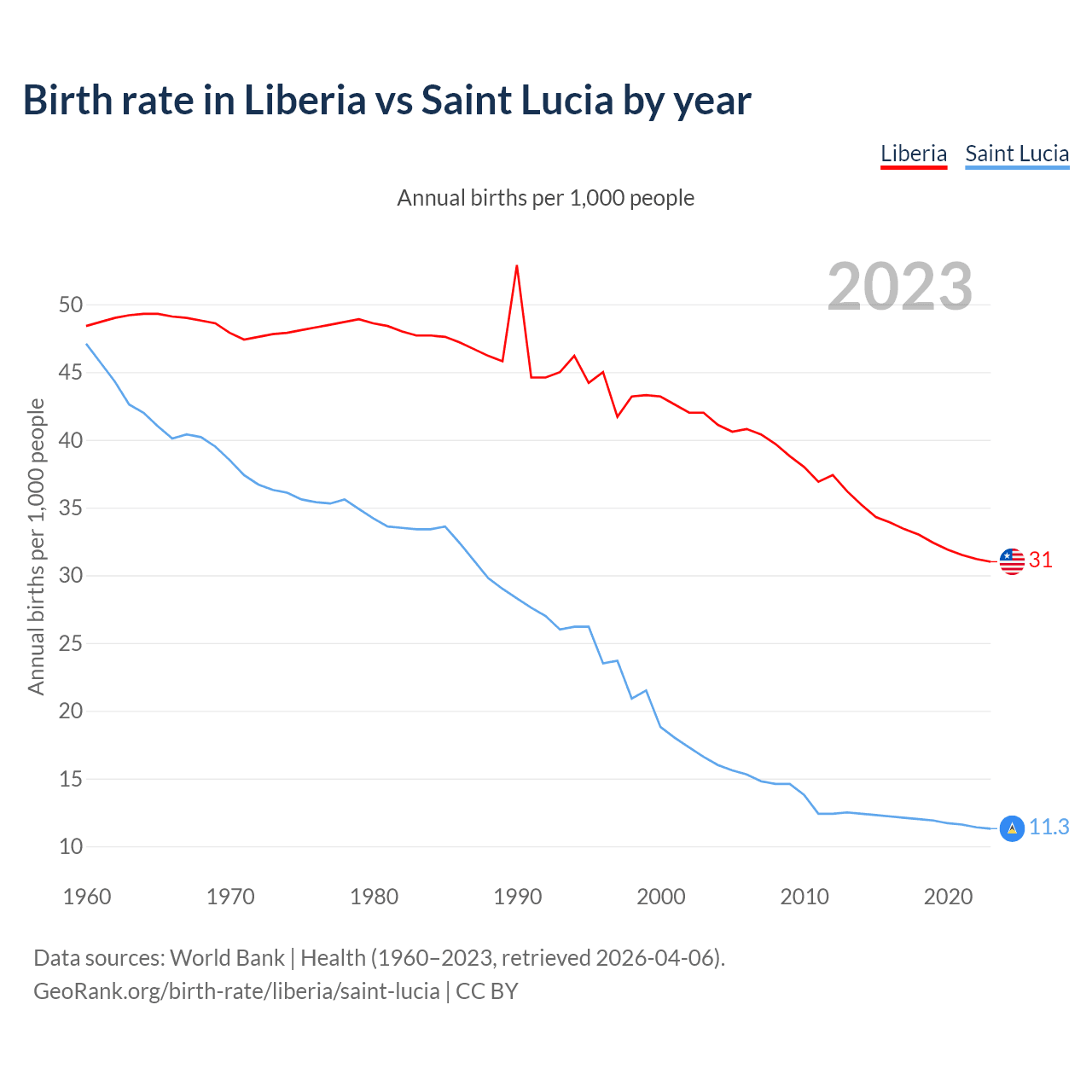 GeoRank.org/birth-rate/liberia/saint-lucia | CC BY