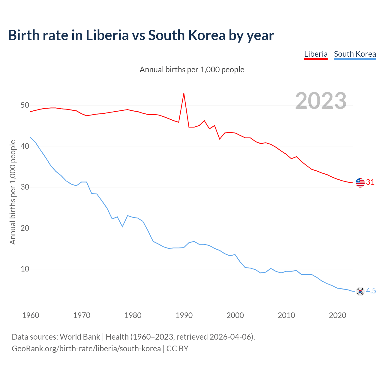 GeoRank.org/birth-rate/liberia/south-korea | CC BY